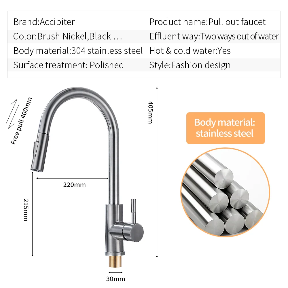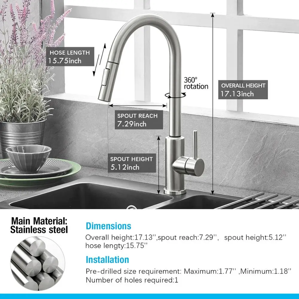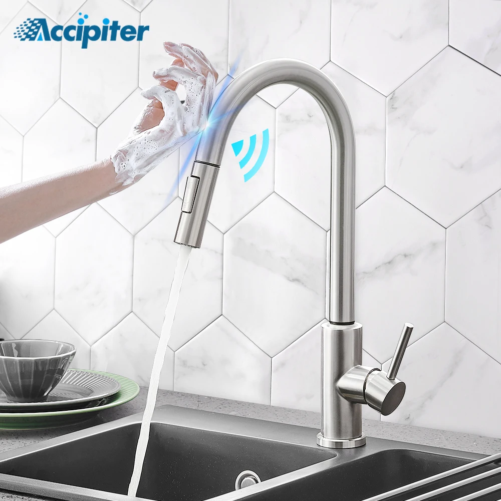 Выдвижная щетка с никелевым датчиком смесители для кухни Смеситель для горячей и холодной раковины Смеситель для кухни с сенсорным управлением