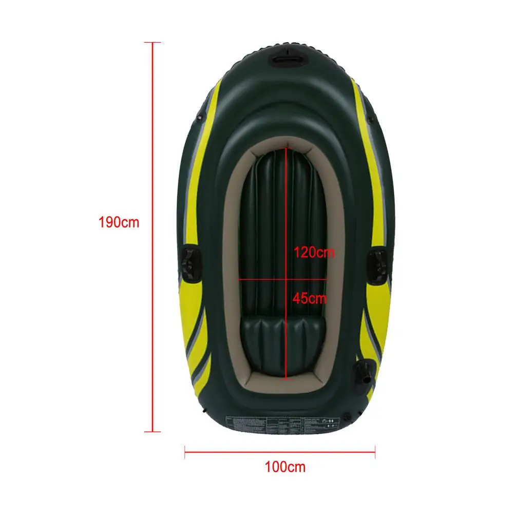 Точки пули:1. Дополнительный Размер s: размер лодки, который должен быть специфическим, 1 человек: 150*90 см * 41 см/59,06*35,43*16,14 дюйма (около), вес: 100 кг, 2 человека: 190*115*41 см/74,80*45,28*16,14 дюйма (около), вес: 150 кг, 3 человека: 240*137*41 см/94,49*53,94*16,14 дюйма (около), Вес: 200 кг. Обеспечьте долгосрочное водное развлечение.2. Легко носить с собой: с надувным дизайном лодка легко складывается. Так что вы можете легко хранить и переносить.3. Высокое качество: Изготовлен из высококачественного и жесткого ПВХ материала, с толщиной стенки 0,38 см, устойчив к разрыву и истиранию, высокая прочность и не легко повредить.4. Легкая Инфляция: может быть быстро надута и сдута, что позволяет быстро наслаждаться водным досугом. Хороший компаньон для вашего отпуска с семьей и друзьями.5. Широкое Применение: подходит для озер, рыбалки и побережья, рафтинга на открытом воздухе, рыбалки, путешествий, деятельности родителей и детей и т. д.Особенности:1. Сверхмощный: надувная лодка имеет 2 размера, включая A:150x90 см * 41 см/(около), Несущая способность: 100 КГБ: 190x115*41 см/(около), несущая нагрузка: 150 кг, C: 240x137*41 см/(около), несущая нагрузка: 200 кг.2. Легко носить с собой: с надувным дизайном, эта лодка легко складывается. Чтобы вам было удобно хранить и носить с собой.3. Быстрая надувание и Дефляция: надувная лодка имеет двойной дизайн клапана, чтобы быть хорошим для быстрой надувания и дефляции.4. Премиум ПВХ: надувная лодка изготовлена из высококачественного и жесткого ПВХ материала, с толщиной стенки 0,38 см/0,15 дюйма (около), лодка устойчива к разрыву и истиранию, высокая прочность и не легко повредить.5. Широкое применение: надувная лодка легко складывается, легко хранить и транспортировать, подходит для озер, рыбалки и побережья, рафтинга на открытом воздухе, рыбалки, путешествий, деятельности родителей и детей, И т. д.Характеристики:TypeA: армейский зеленый одиночный корабльРазмер: 150*90 см * 41 см/59,06*35,43*16,14 дюйма (около), Подшипник нагрузки: 100 кгАксессуары: весла, ножной воздушный насос, Ремонтный комплект, веревкаTypeB: Армейский зеленый 2-х местная доставкаРазмер: 190*115*41 см/74,80*45,28*16,14 дюйма (около), нагрузка: 150 кгАксессуары: весла, ножной воздушный насос, Ремонтный комплект, веревкаTypeC: армейский зеленый Корабль из трех человекРазмер: 240*137*41 см/94,49*53,94*16,14 дюйма (около), нагрузка: 200 кгАксессуары: весла, ножной воздушный насос, Ремонтный комплект, веревкаТип: Желтая Двойная лодкаРазмер: 190*115*41 см/74,80*45,28*16,14 дюйма (около), нагрузка: 150 кгАксессуары: весла, ножной воздушный насос, Ремонтный комплект, веревкаУпаковочный лист: