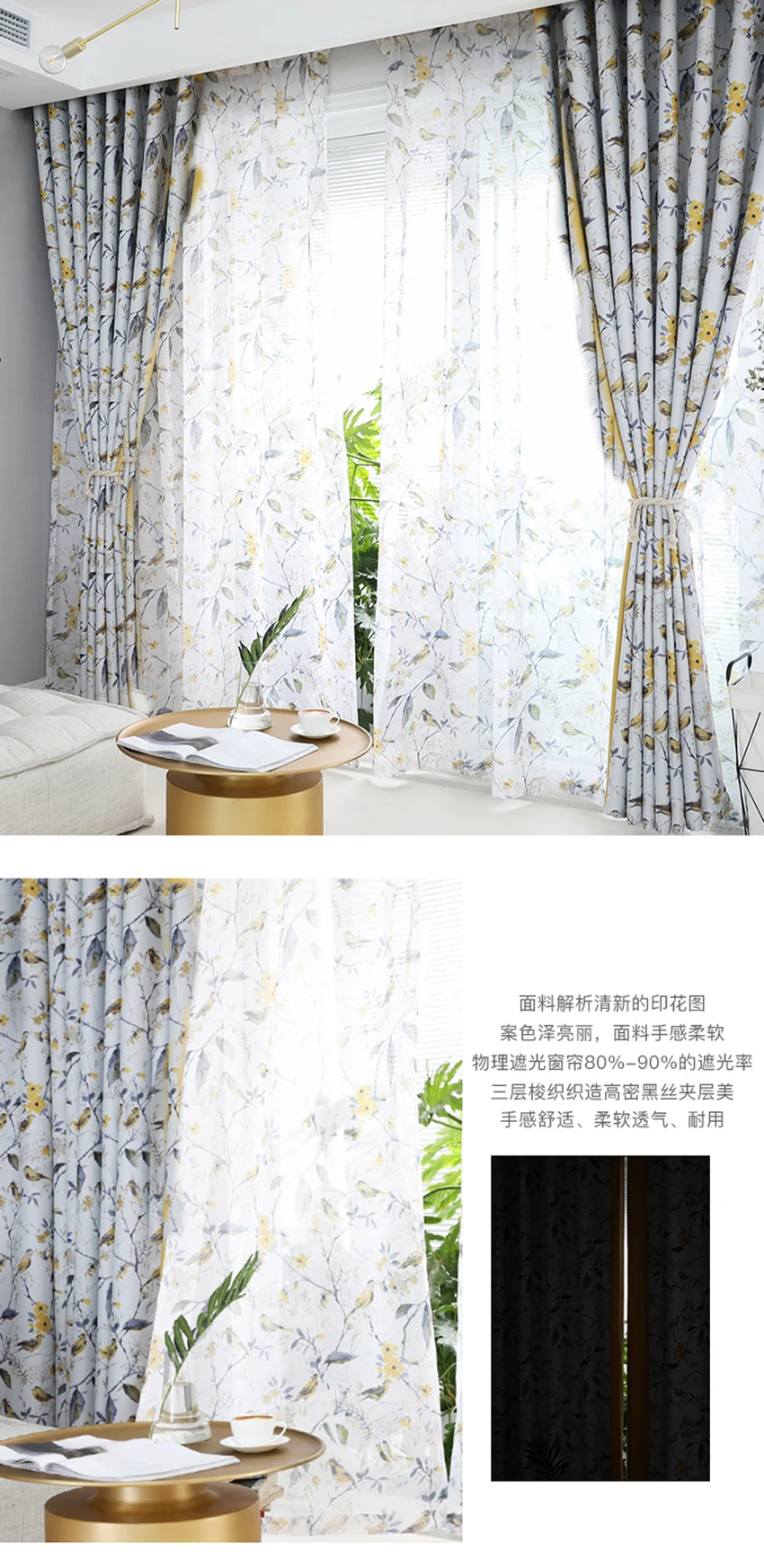 Затемняющие шторы, с американским принтом птиц, для гостиной, спальни, тюлевые занавески, тканевые занавески #40