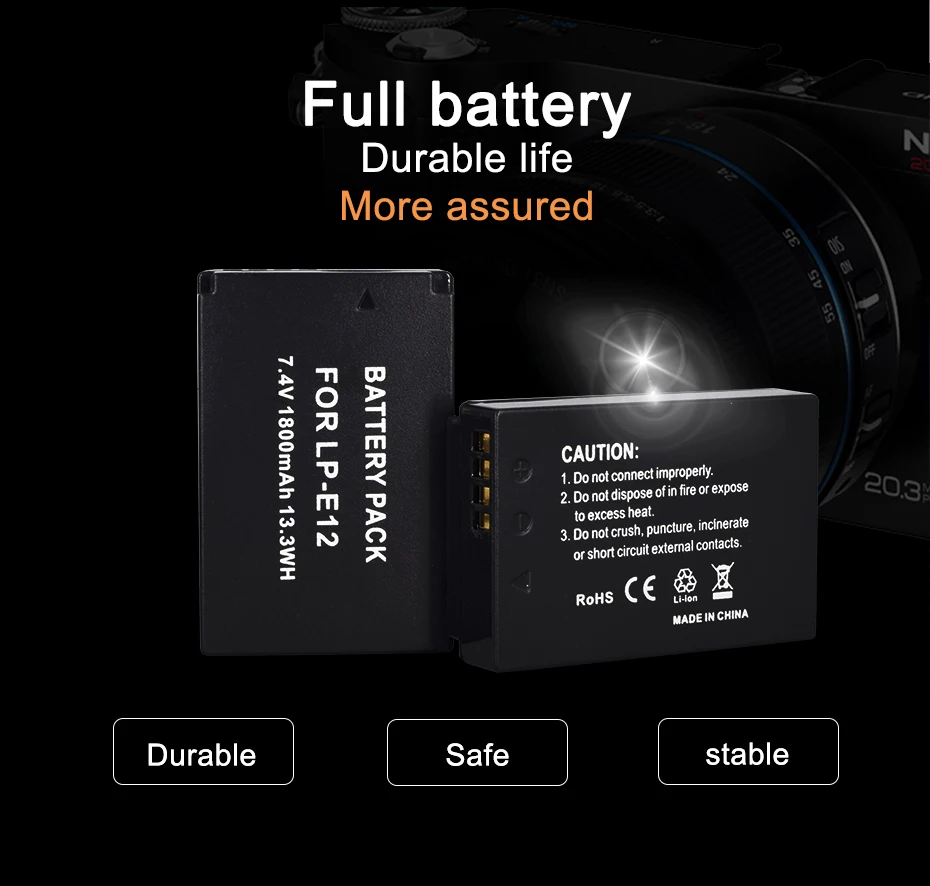 Литий-ионный аккумулятор 1800 мА ч LP-E12, 2 зарядных устройства U...