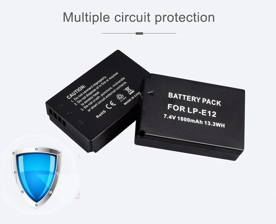 2 шт. 1800 мАч, LP-E12 LP E12 LPE12 Li-Ion Батарея + ЖК-дисплей USB...