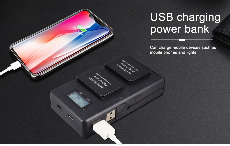 2 шт., цифровой аккумулятор для камеры LPE12 LP E12 + ЖК-USB, заряд...