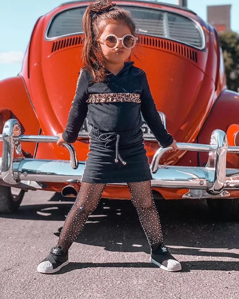Модный комплект из двух предметов для маленьких девочек: свитер с леопардовым принтом и юбка-идеальный джинсовый костюм, который придаст вашим девочкам летнюю свежесть и комфорт, наполнит энергией и жизненной силой. Этот повседневный топ с длинными рукавами и облегающая юбка идеально подходят для детского дня рождения.