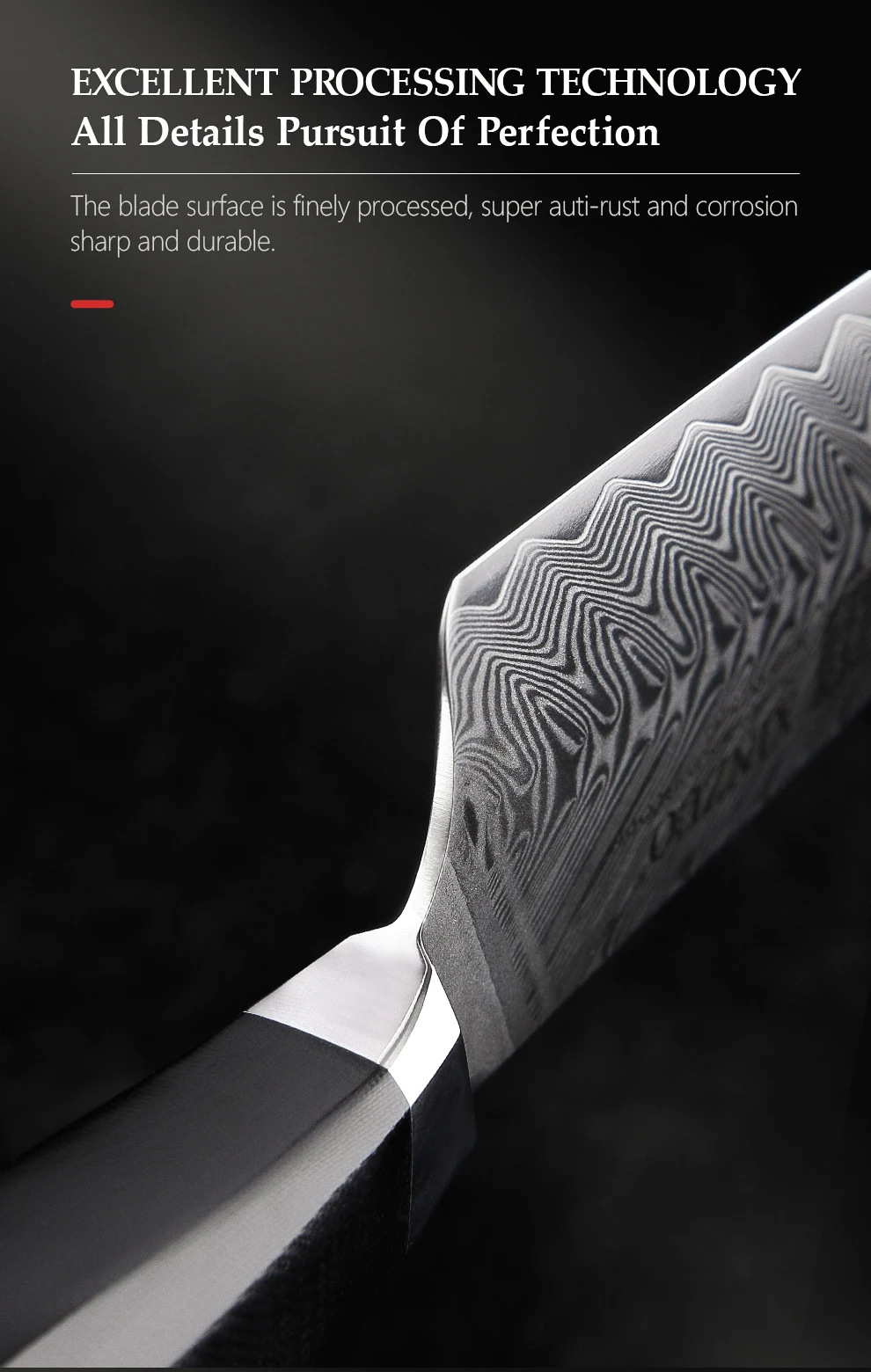 Нож XINZUO, 7,3 дюйма, Santoku, 67 слоев дамасской стали, острые и ...