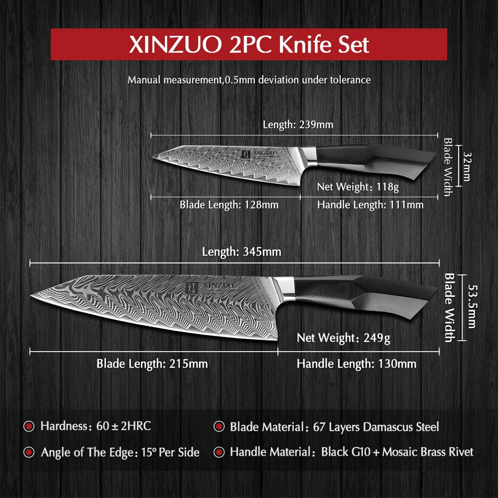 XINZUO Фэн серии 2 шт Дамасская сталь набор ножей