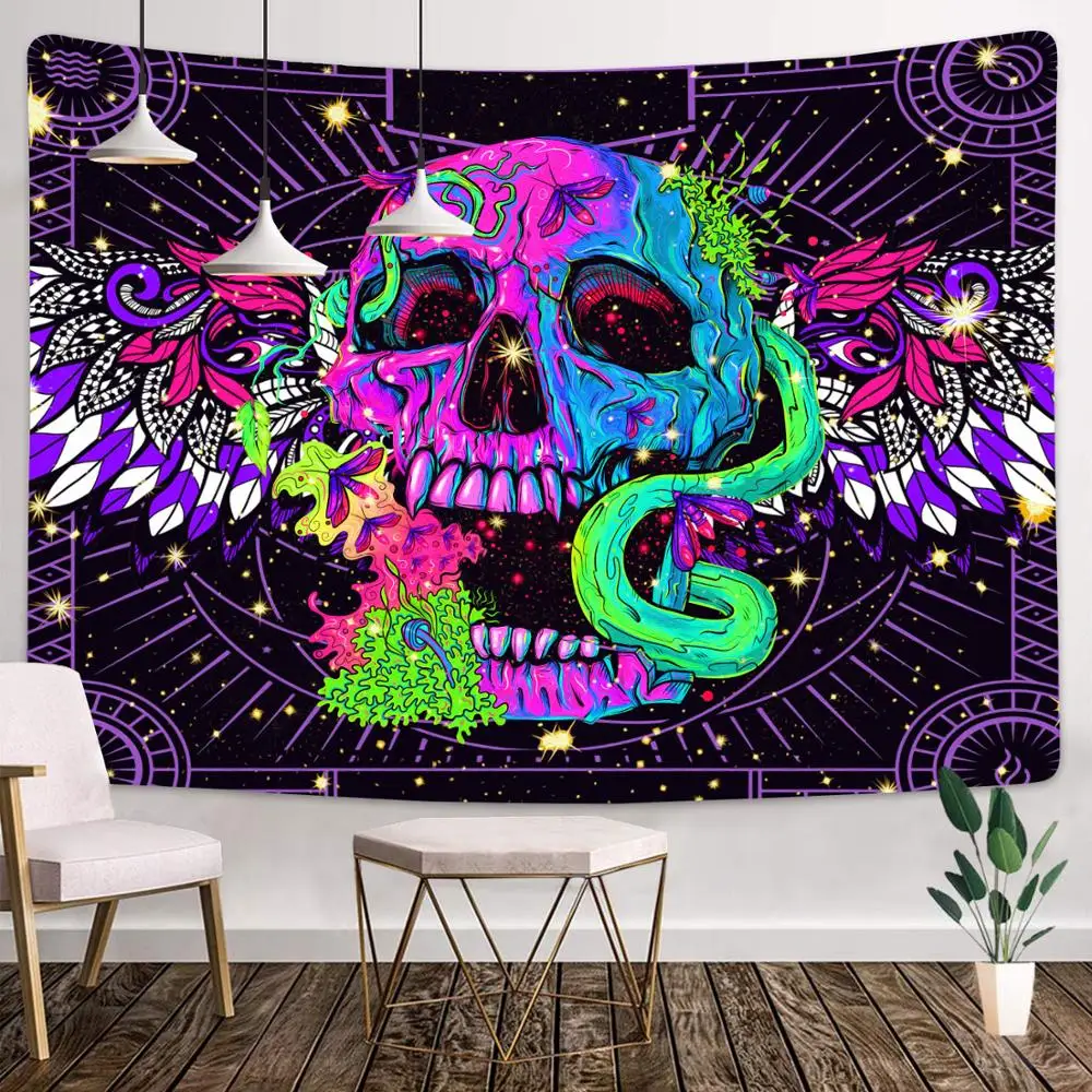 Гобелен simсант мексиканский для йоги с цветными цветами, черепами, Дорожный Коврик для сна, гобелен настенный из полиэстера с принтом скелета