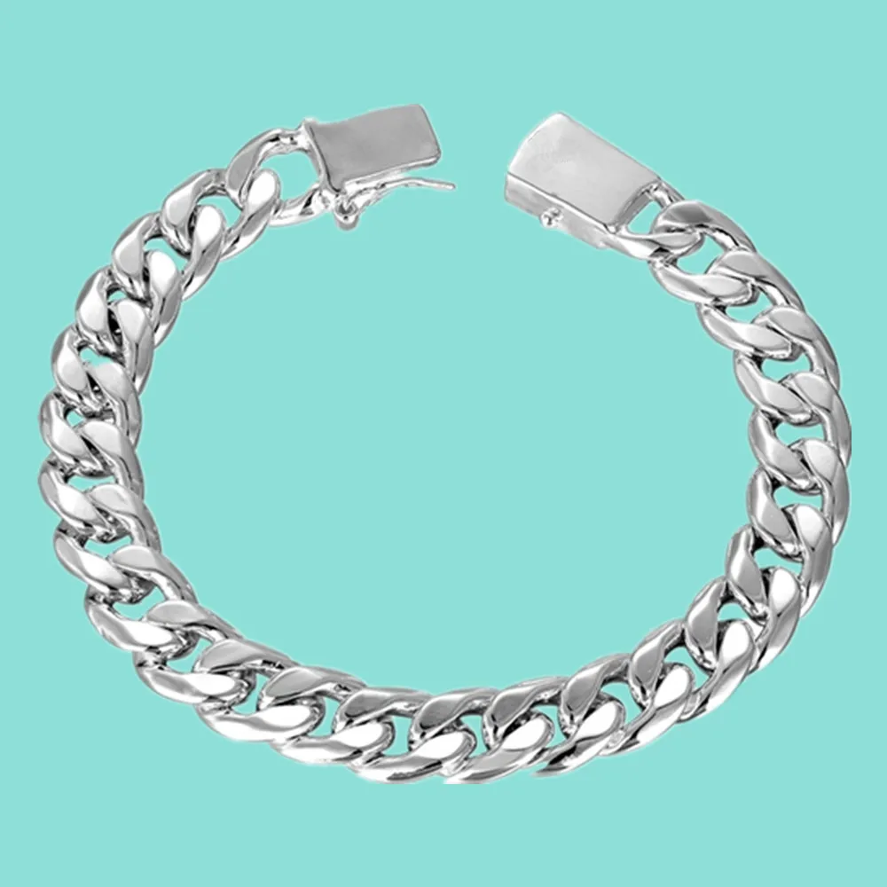 Браслет мужской из стерлингового серебра 925 пробы с квадратной пряжкой 10 мм, Классическая цепочка, ювелирное изделие