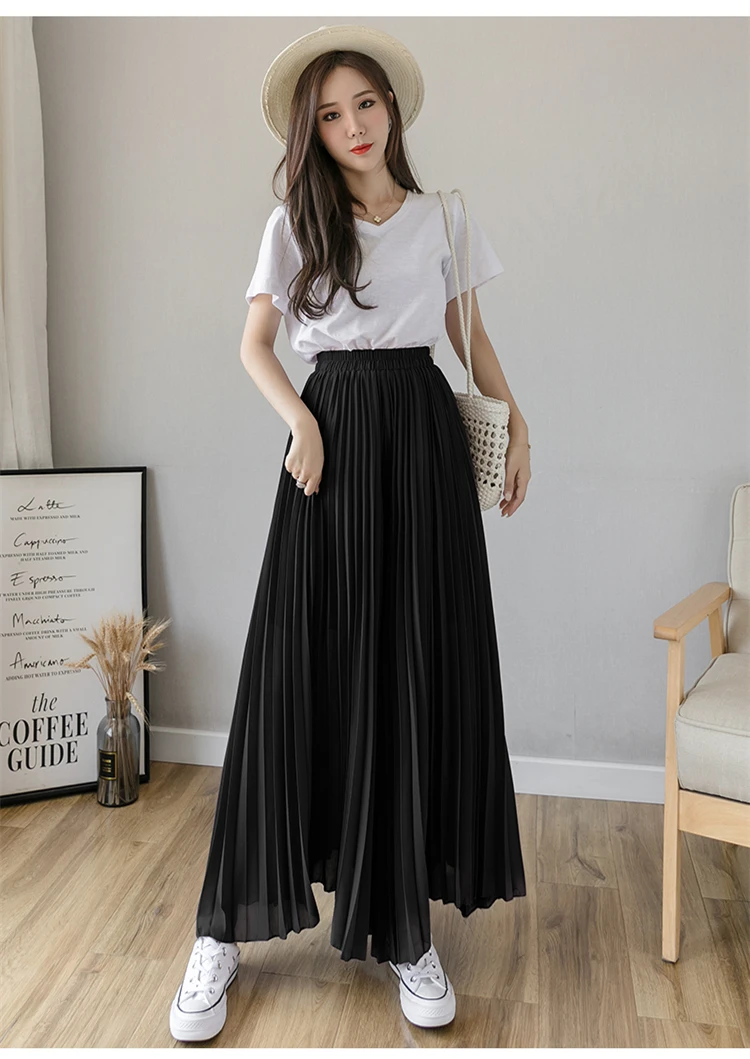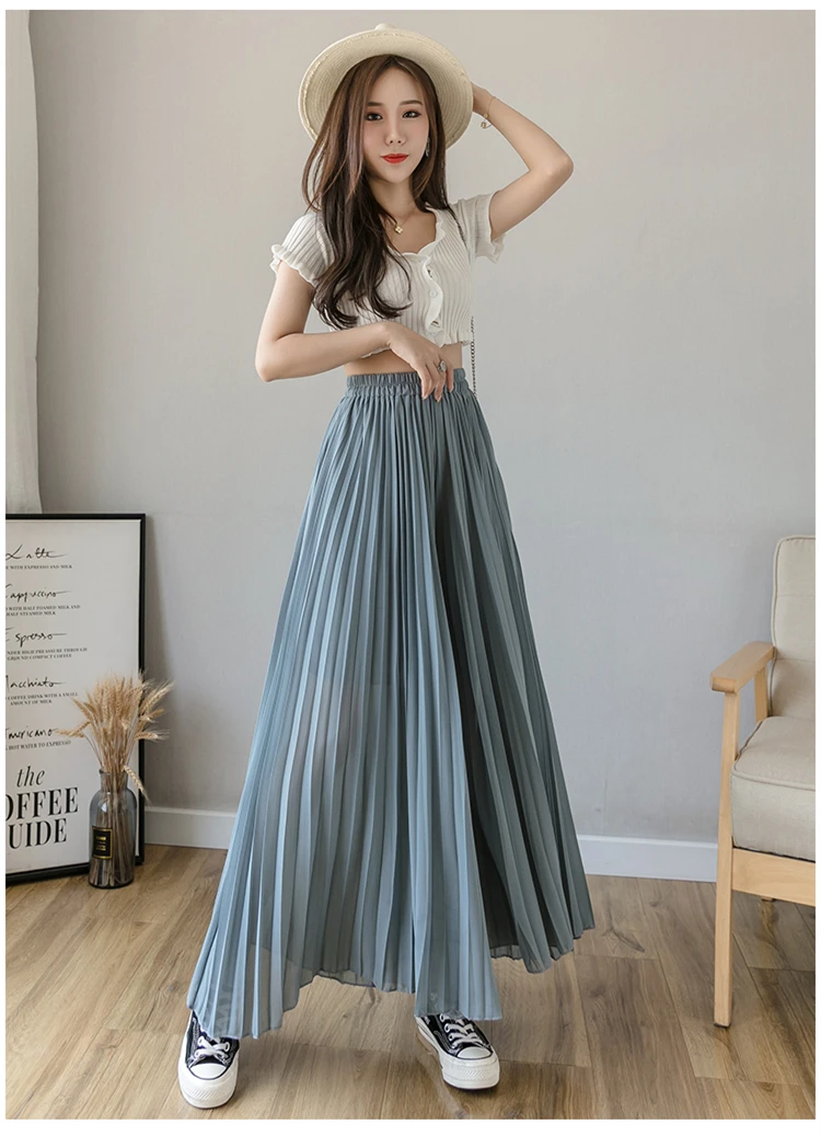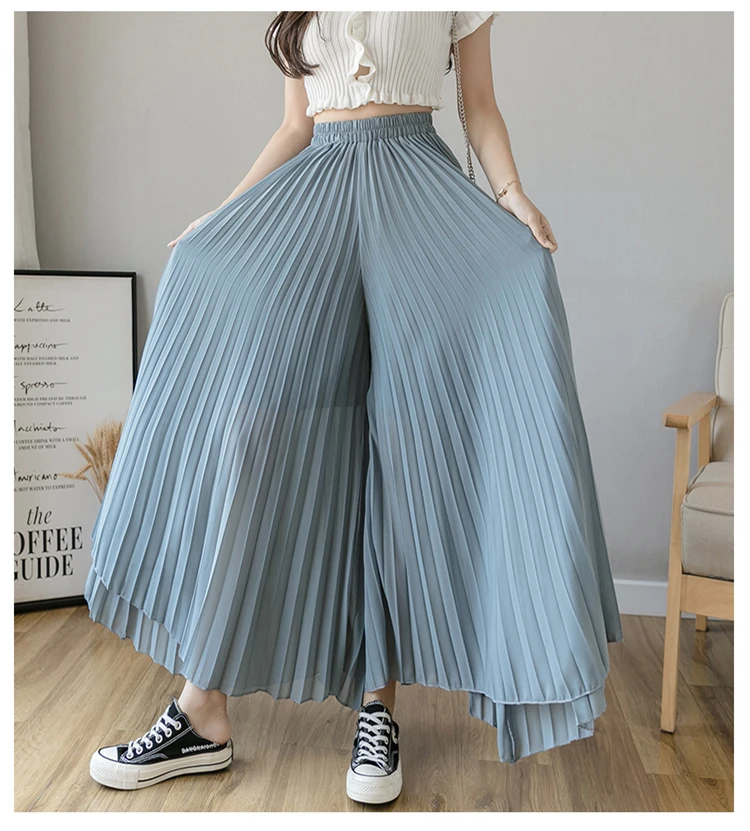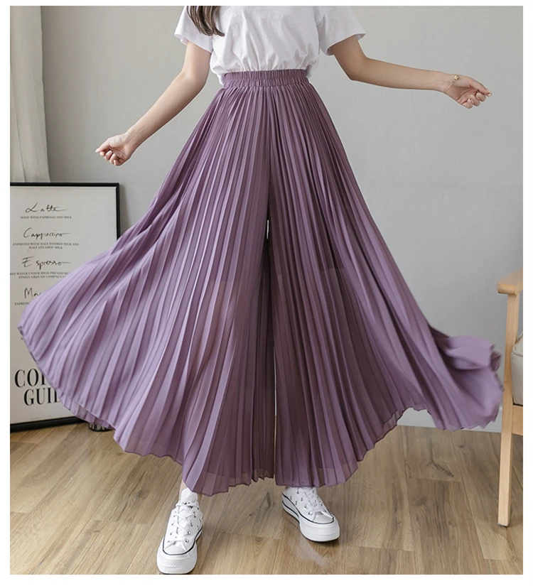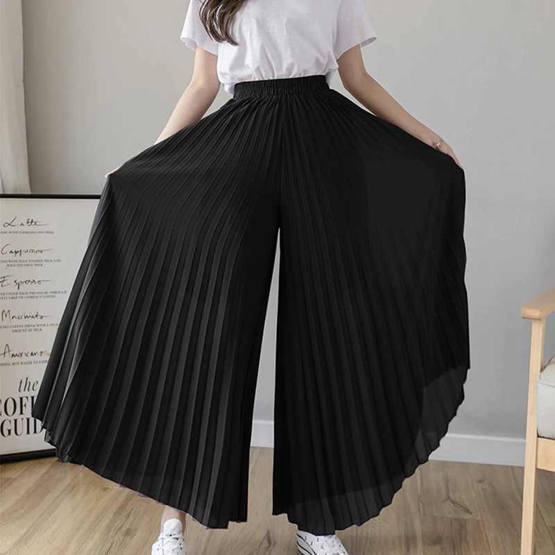 Брюки женские шифоновые, синие, черные, фиолетовые, с высокой талией