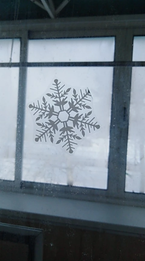 Залом по центру листа, из-за этого снежинки, которые согнулась, плохо прилегают к стеклу. В остальном - всё хорошо))).