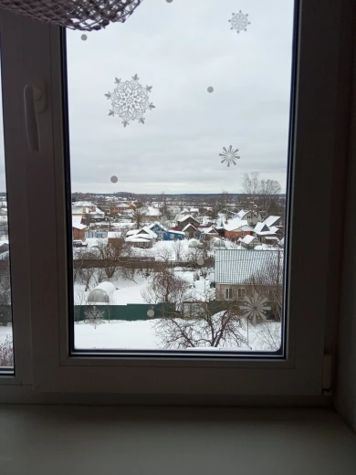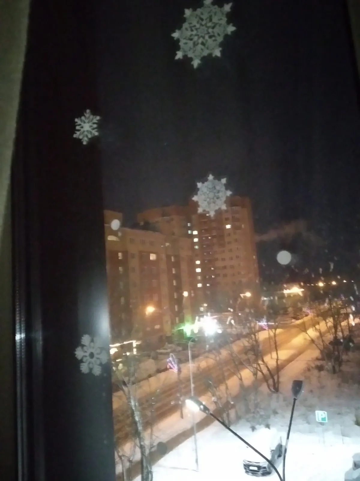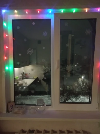Снежинки крутые, они как пленка, крепятся на окно без клея и держатся отлично! Рекомендую!