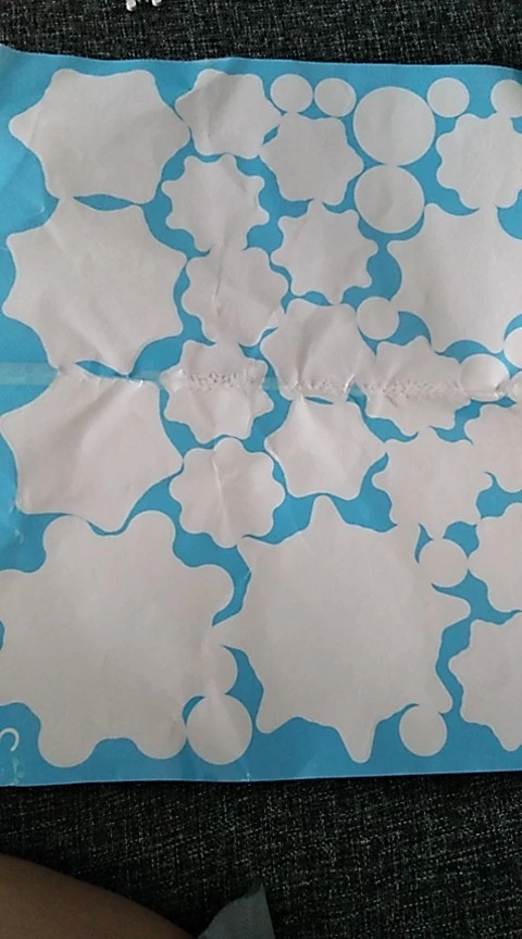 Доставка месяц до Москвы. Лист со снежинками сложен пополам, из-за чего снежинки с заломами.