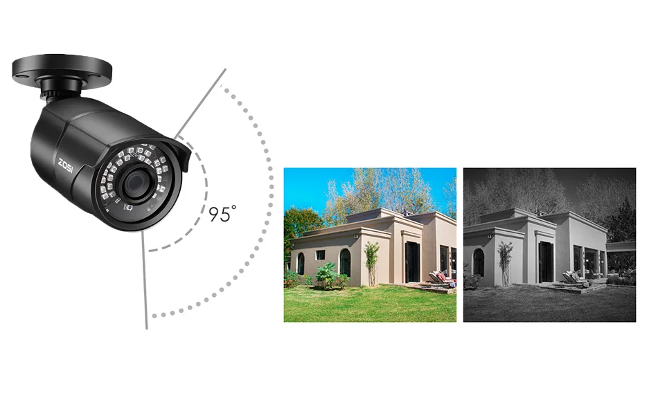 100-футовое черно-белое ночное видение с 36 ИК-светодиодамиЧеткие, четкие цветные дневные изображения3,6 мм мегапиксельная линзаШирокоугольный угол обзора 95 °