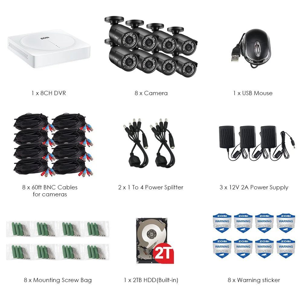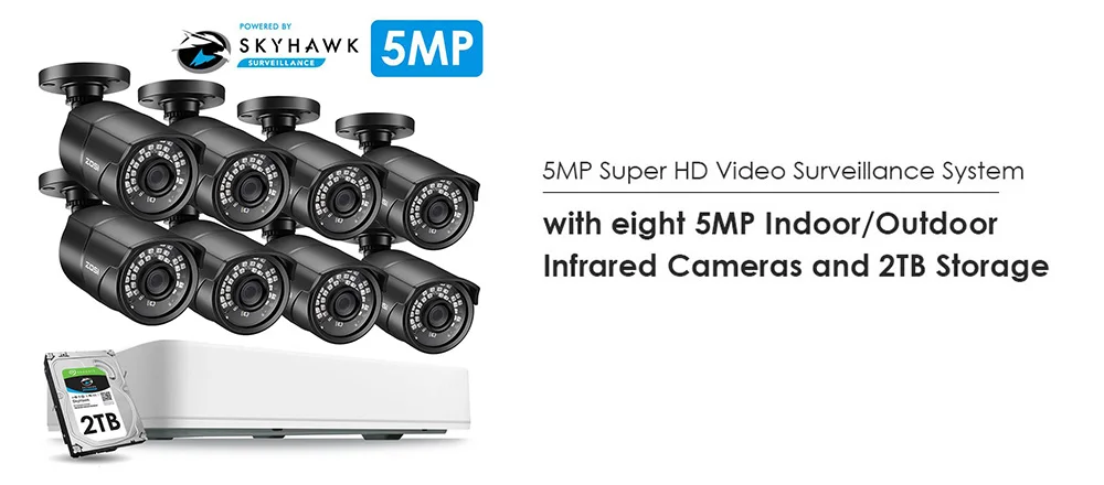Система видеонаблюдения ZOSI AHD, 5 МП, 8 каналов, с камерами видеонаблюдения 5 МП, водонепроницаемая, IP67, DVR, HDD