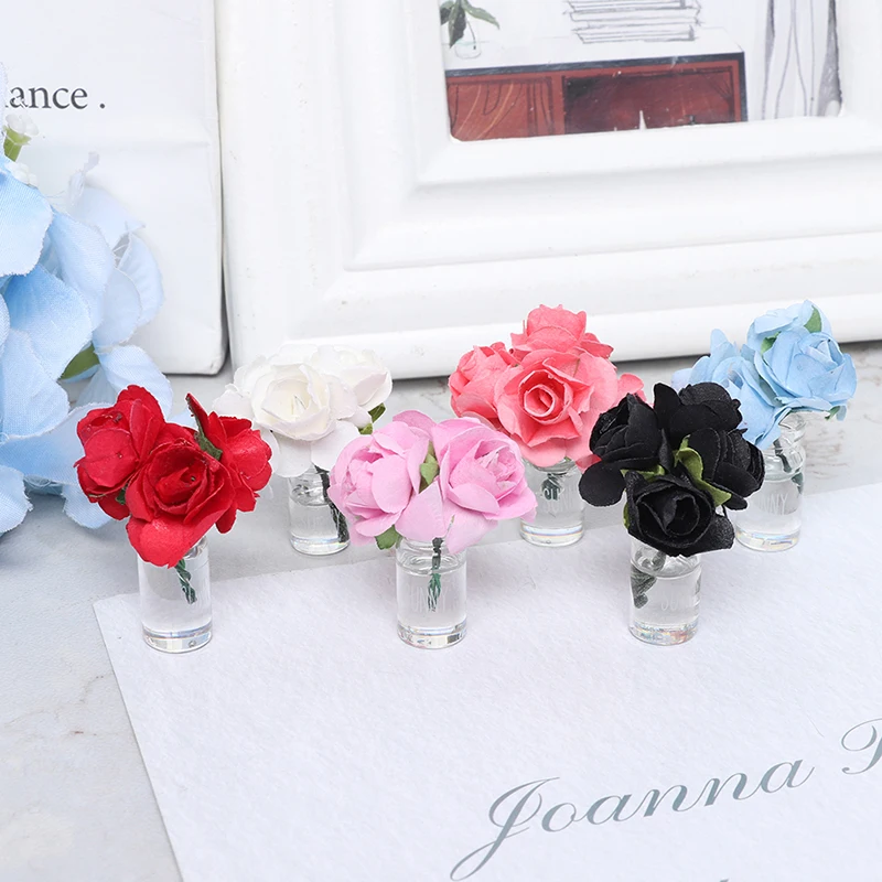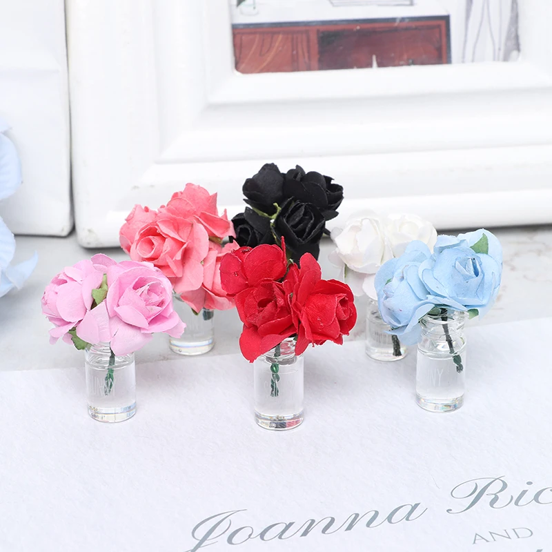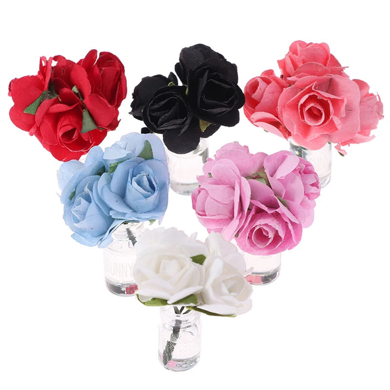 Мини-кукольный домик, миниатюрная зеленая Роза в бутылке, Садовый цветок, 112 игрушек, аксессуары для кукольного домика, расположение декора