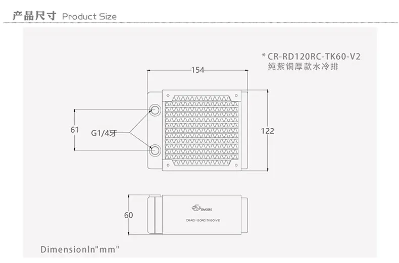 Охлаждающий радиатор для ПК Bykski G14 дюйма, 60 мм, толщина 12 см,...