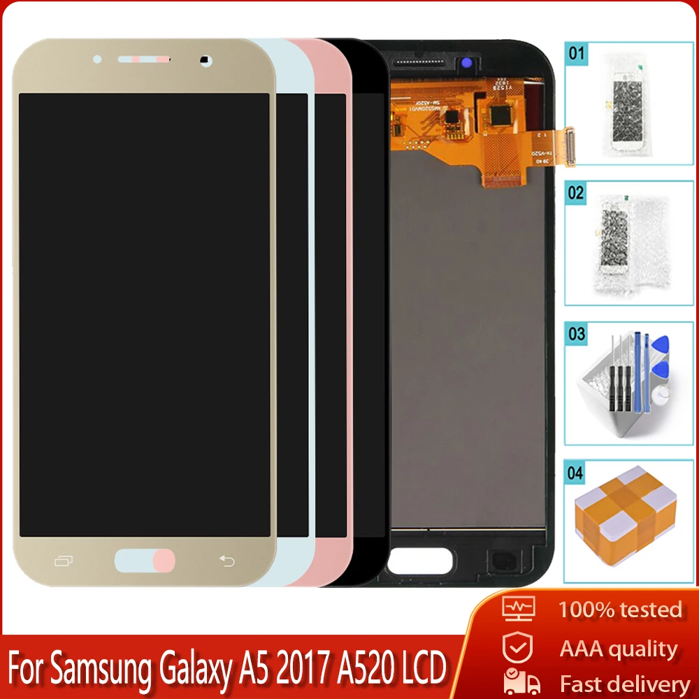 ЖК-экран качества AAA для SAMSUNG GALAXY A5 2017 A520 A520F A520K, ЖК-дисплей 100% протестированный, сенсорный экран с дигитайзером в сборе