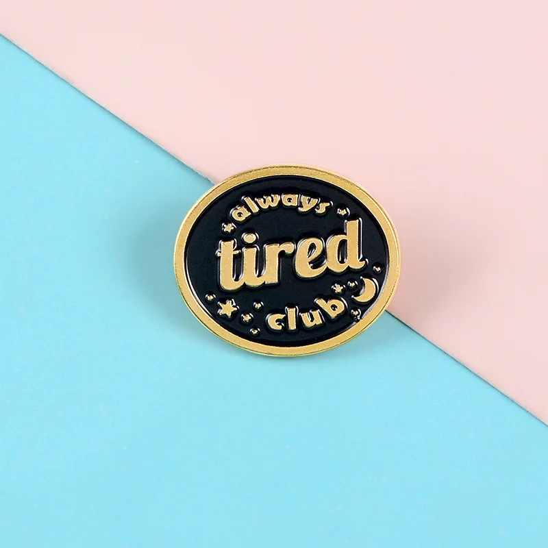 Черная эмалированная булавка на заказ, всегда уставшие Клубные брош...