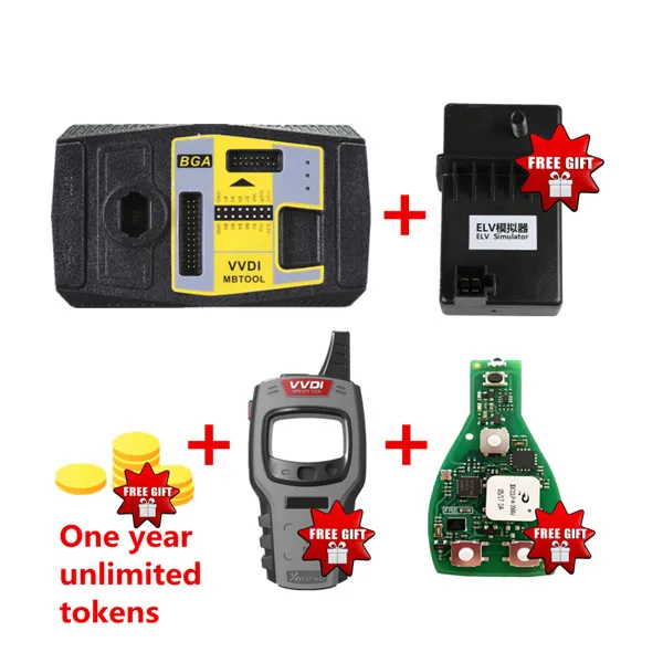Xhorse V5.1.5 программатор VVDI MB Tool для Benz Key программатор получить 1 год неограниченный Токен + мини ключ инструмент + Xhorse БЕСКЛЮЧЕВОЙ Go PCB + ELV симулятор