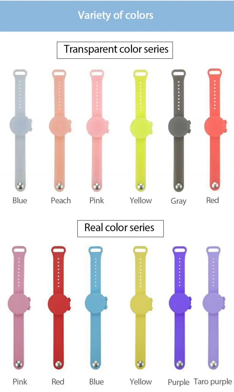 Браслет Biosafety с функцией сделать жизнь людей более практичной и безопасной, позволяя доступ к жидким или гелевым растворам в любое время, всегда доступен под рукой. Для домашнего использования, а также в сочетании с PPE, такими как: дезинфицирующее средство для рук, солнцезащитный крем, репеллент и многое другое.