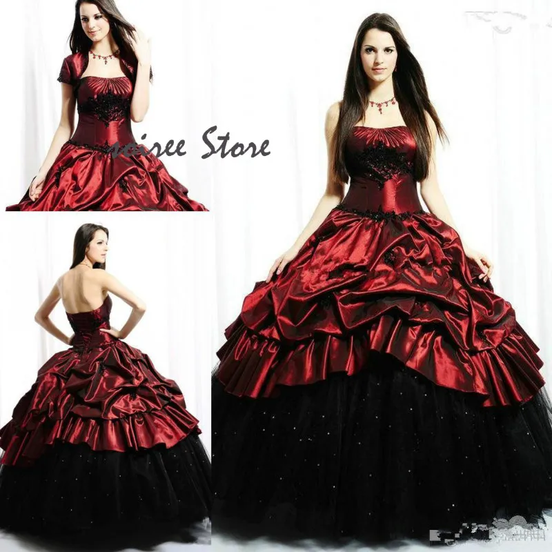Винтажное черно-красное свадебное платье, стиль готика, панк, с выр...
