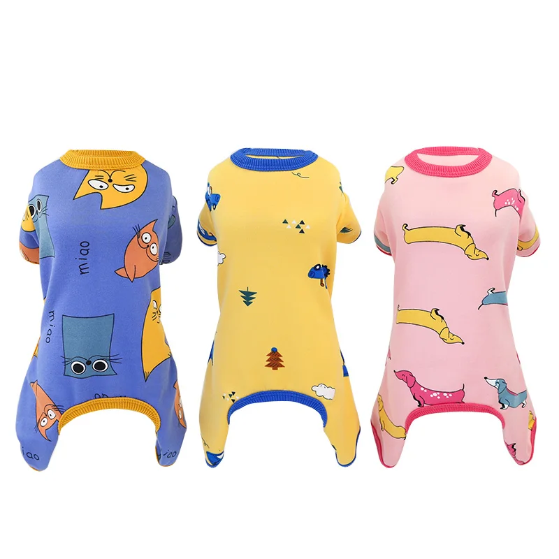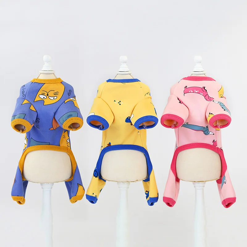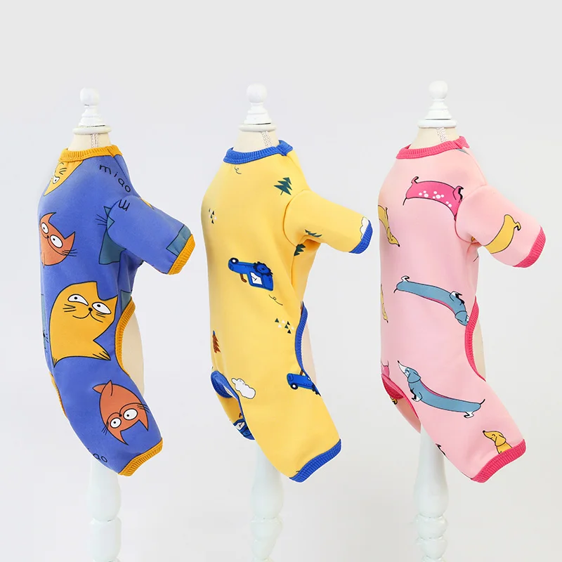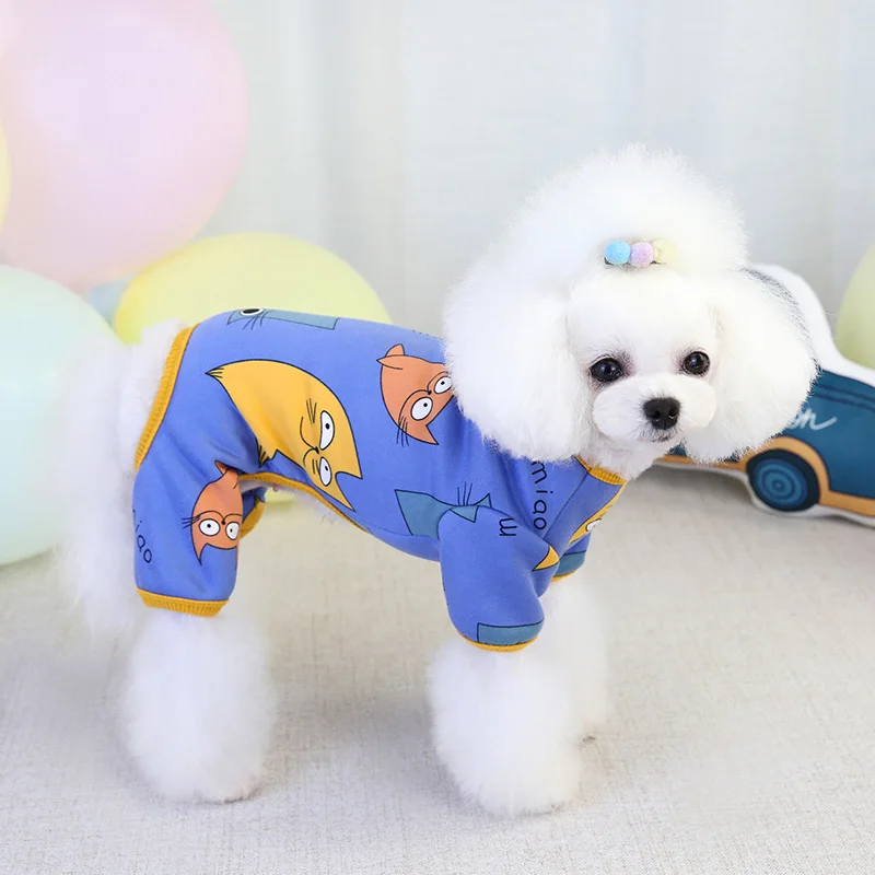 Пижама для домашних животных, милый комбинезон с мультяшным принтом для щенков, удобная одежда, комбинезон для щенка для маленьких собак на осень и зиму