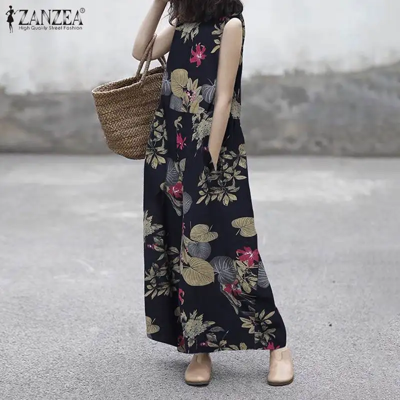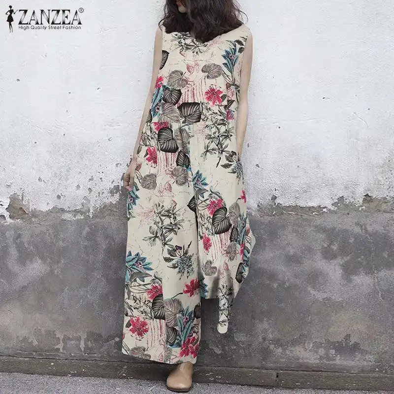Женские летние комбинезоны 2022 ZANZEA винтажные Цветочные Комбинезоны повседневные широкие брюки женские комбинезоны с принтом репы