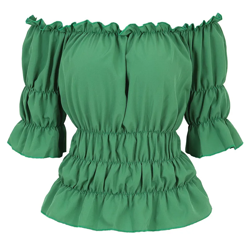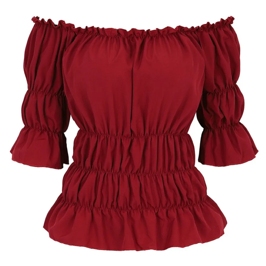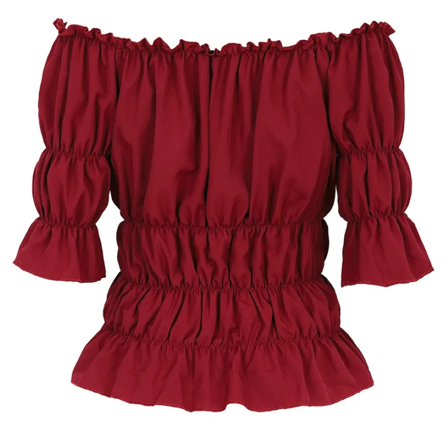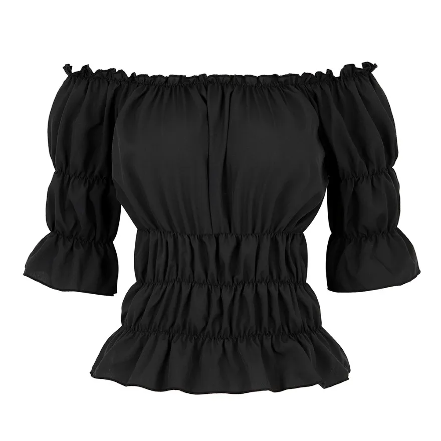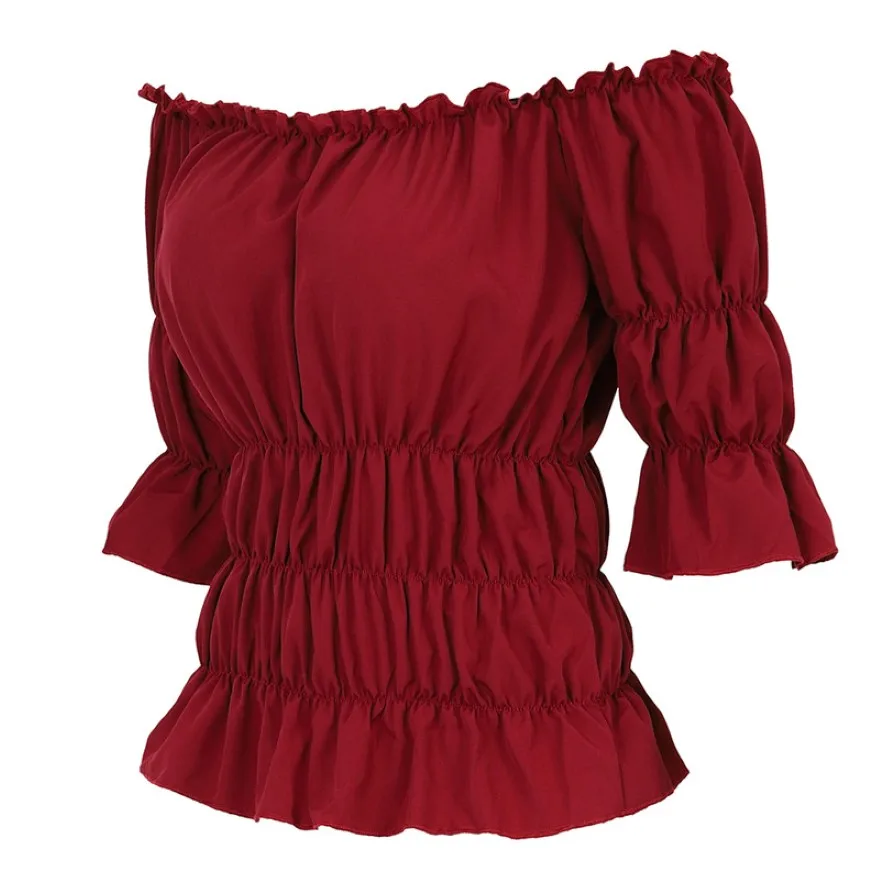 Женская блузка в стиле ренессанс, средневековая приталенная блузка с открытыми плечами и короткими рукавами, рубашка в пиратском стиле, костюм для косплея, размера плюс