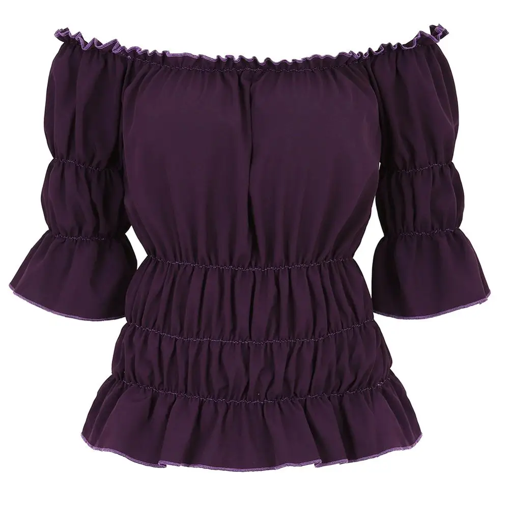 --- Крестьянская блузка Топ подходит для разного сезона, плиссированный лиф может показать ваши очаровательные изгибы, скрыть живот жира.