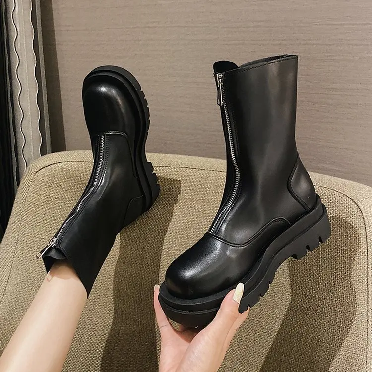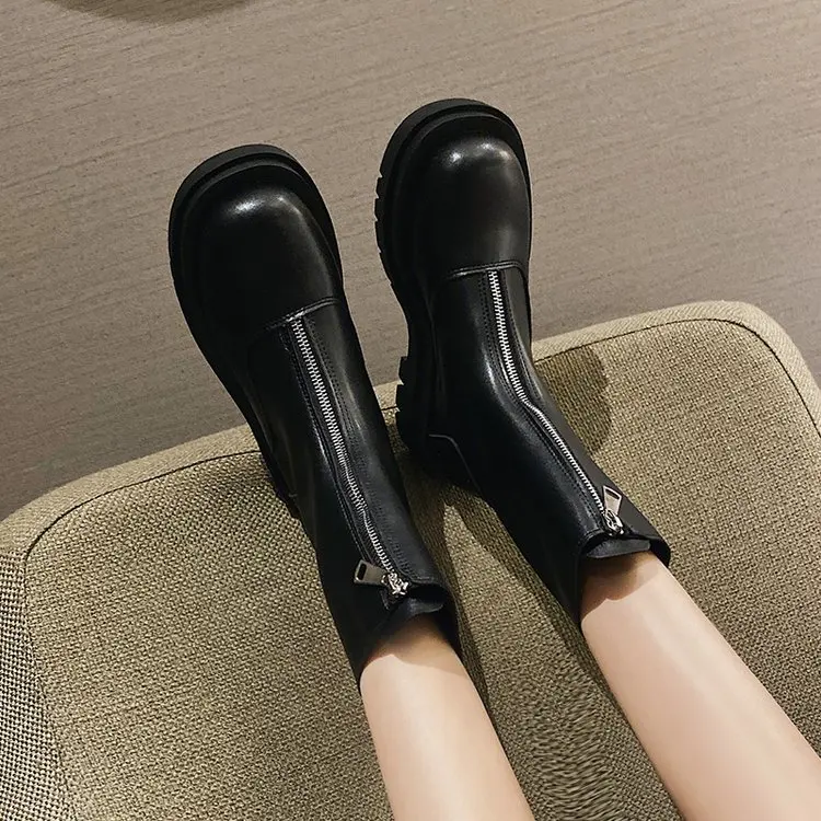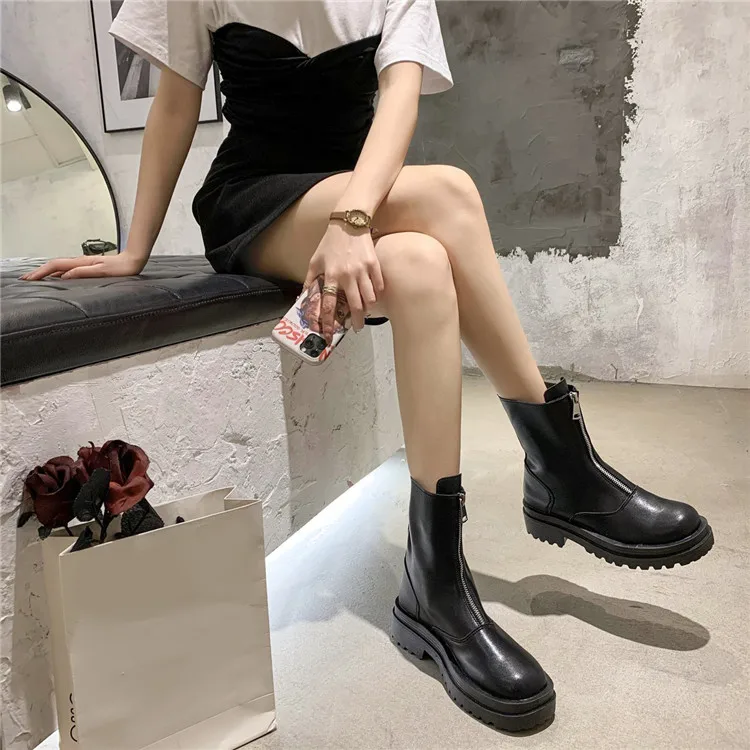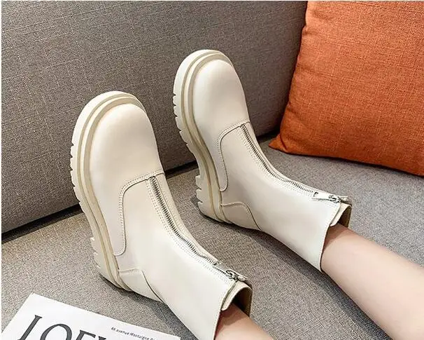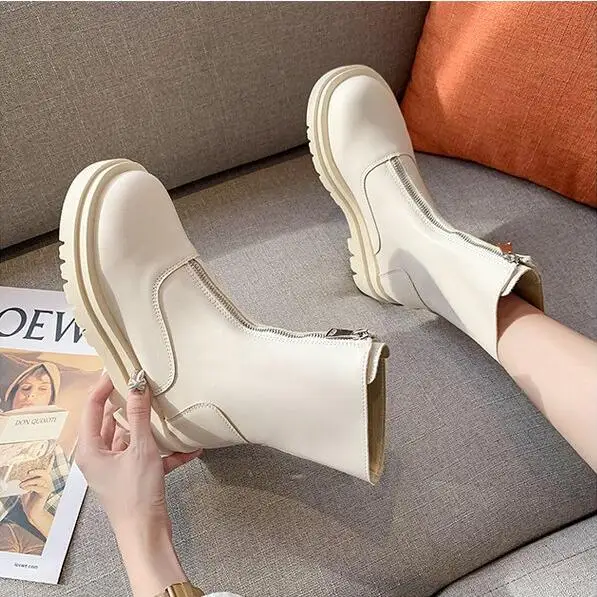 Женские ботинки на молнии COOTELILI, черные, белые, оранжевые ботильоны с круглым носком, на каблуке 5 см, размер 35-40, для зимы