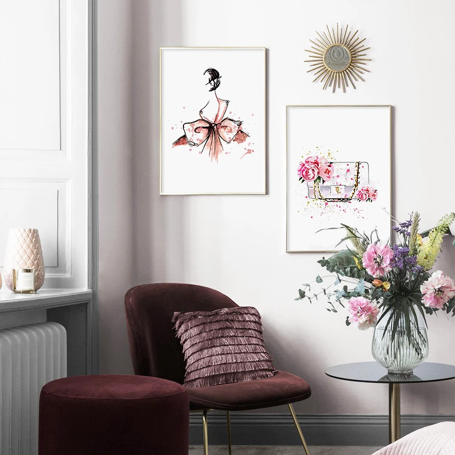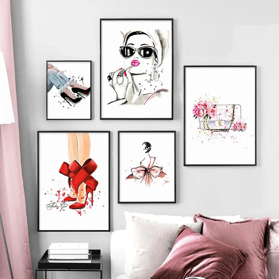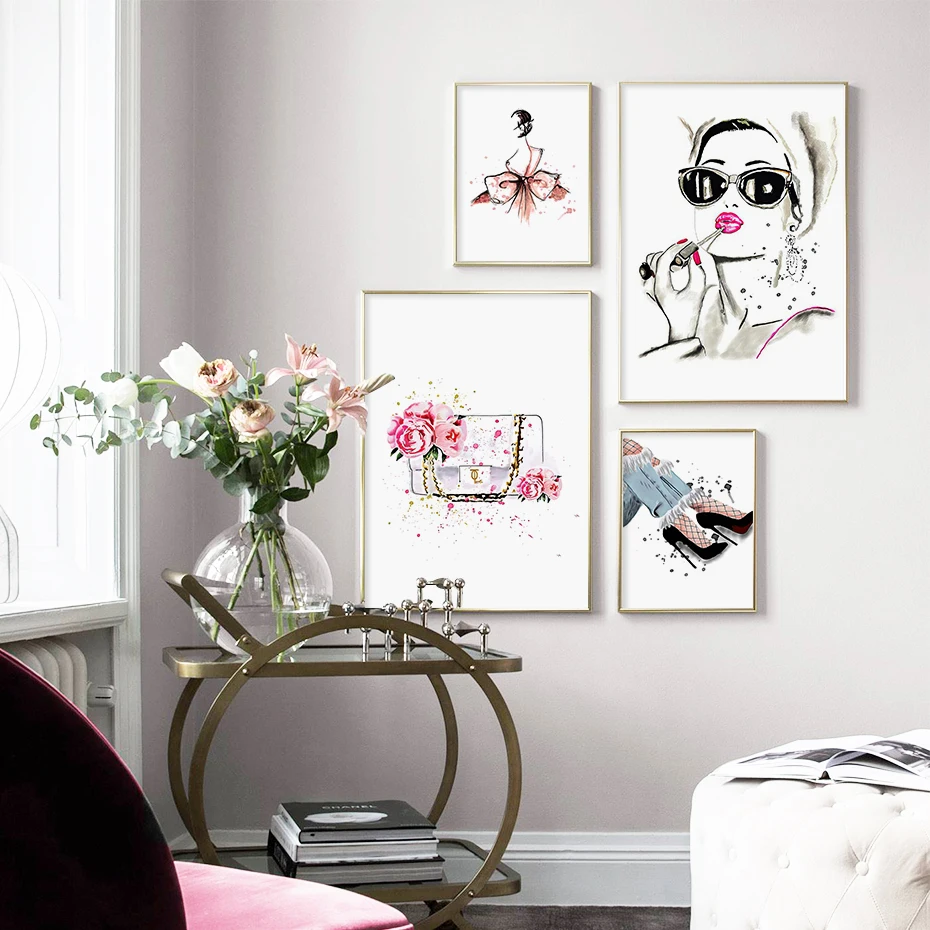 Модный Красный постер с сумкой на высоком каблуке для макияжа, украшение для комнаты для девочек, Картина на холсте, Настенная картина, Современное украшение для спальни и дома