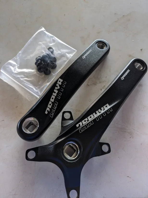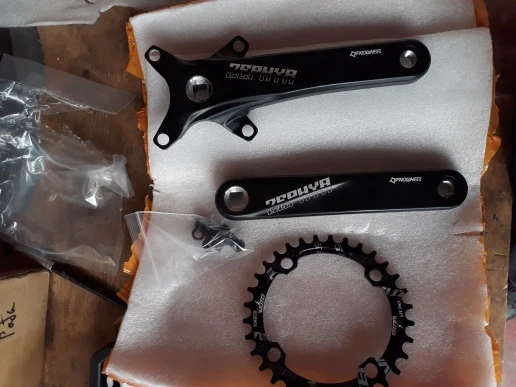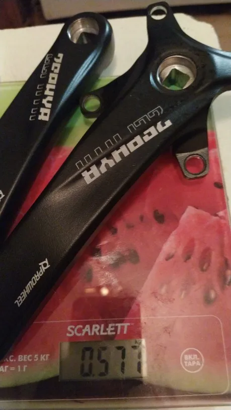 Заказ пришёл за 3 недели до Новосибирска. Упаковано хорошо, пришёл без повреждений. В комплекте 8 винтов, 4 подлинее и 4 покороче. Резьба в шатунах нарезана ровно, закручивается легко, поверхности для звёзд отшлифованы хорошо, посадочное место под квадрат тоже выполнено хорошо. Поставил на велик, катаюсь, радуюсь.