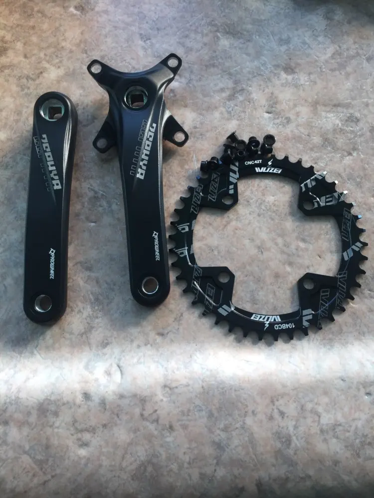 Установил эти шатуны со звездой 36-104BCD взамен стоковых 30-76BCD на свой GT AVALANCHE ELITE 2020. Clearance до пера 1-2мм, только только встали. 38я уже бы не влезла. Продавца и товар рекомегдую.