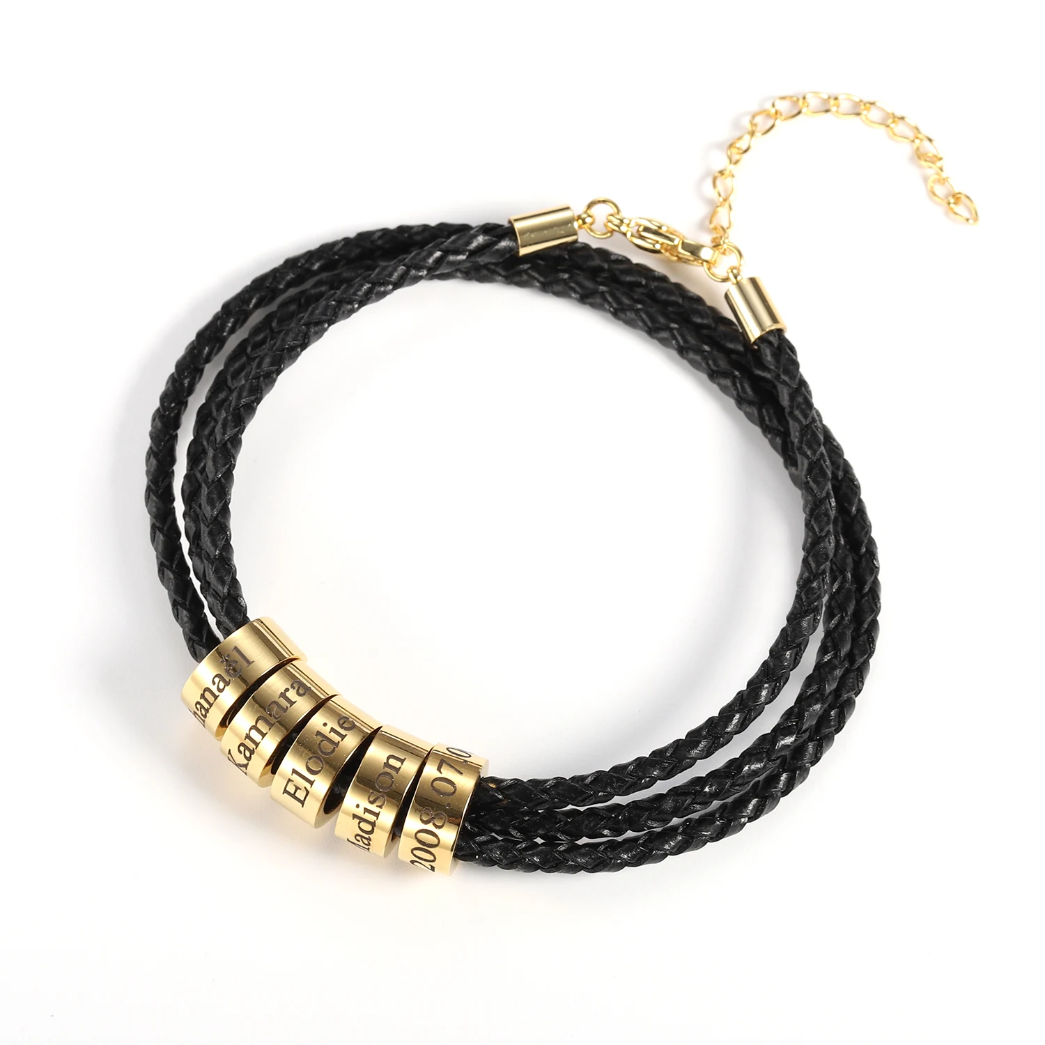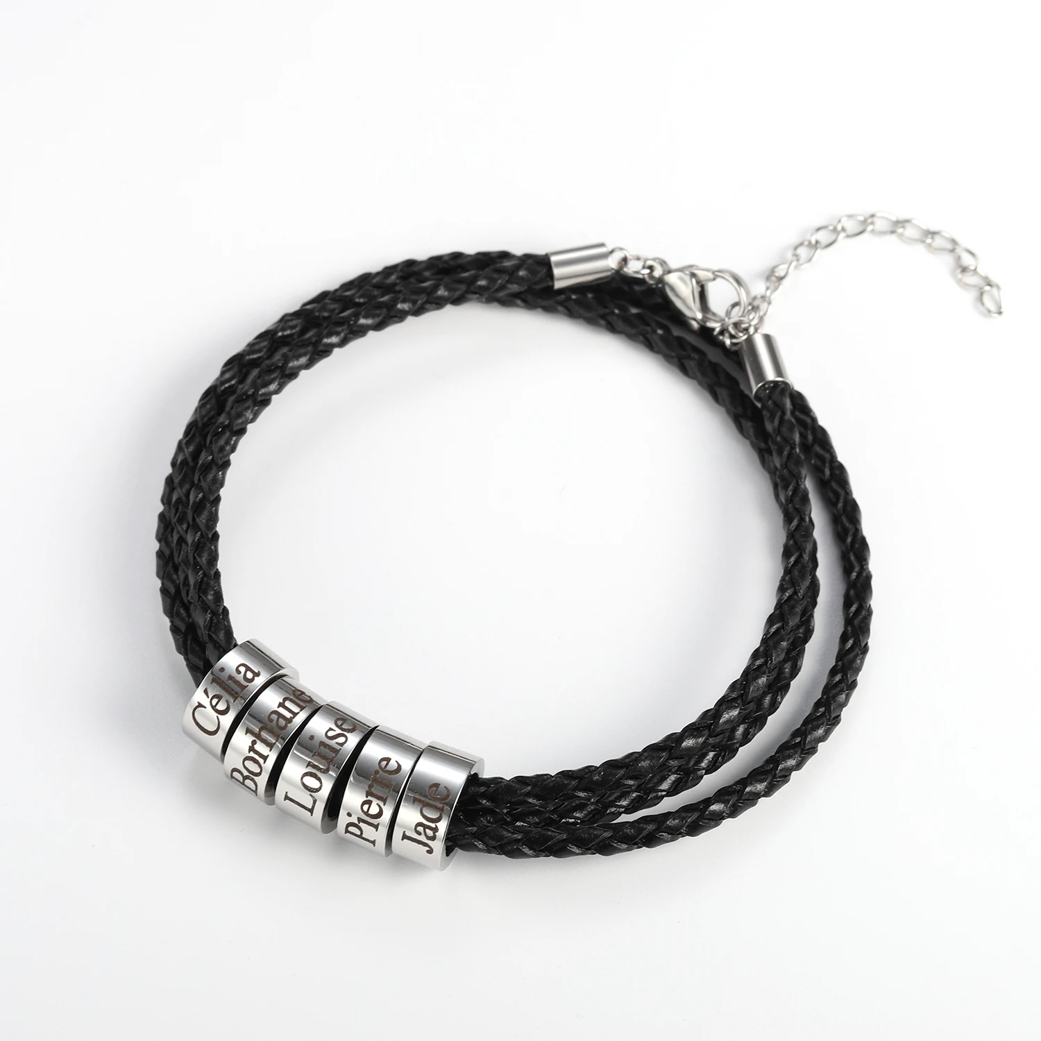 Индивидуальный браслет для него с именем, мужское ювелирное изделие, персонализированный мужской браслет с бусинами, плетеный браслет из натуральной кожи, семейный подарок