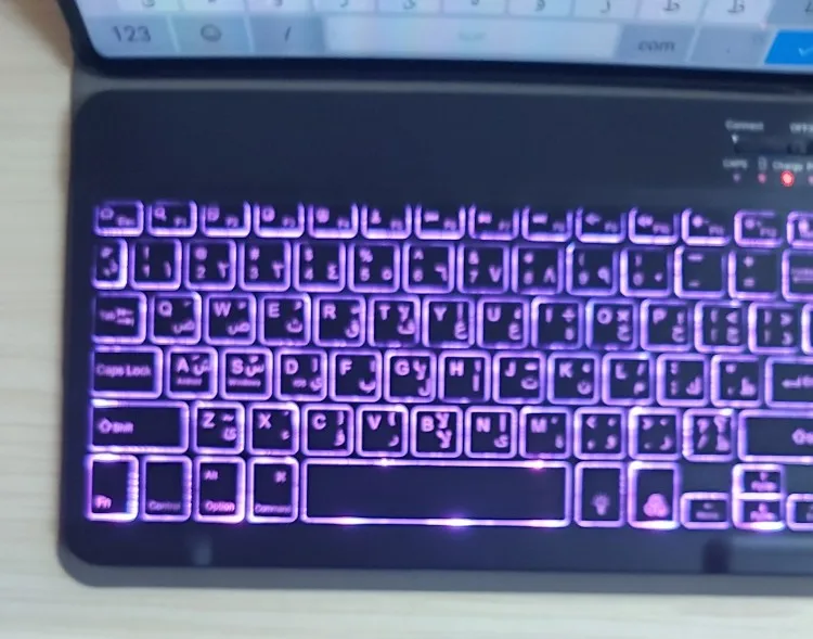 Удобный чехол, приятная подсветка. Пришлось в плей маркете покупать программу для переключения языков. Покупкой доволен.