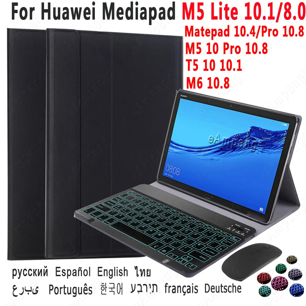 Чехол для клавиатуры с подсветкой для Huawei Mediapad T5 10 M5 lite 10,1 M5 10 Pro M6 10,8 Matepad 10,4 Pro 10,8, чехол для клавиатуры и мыши