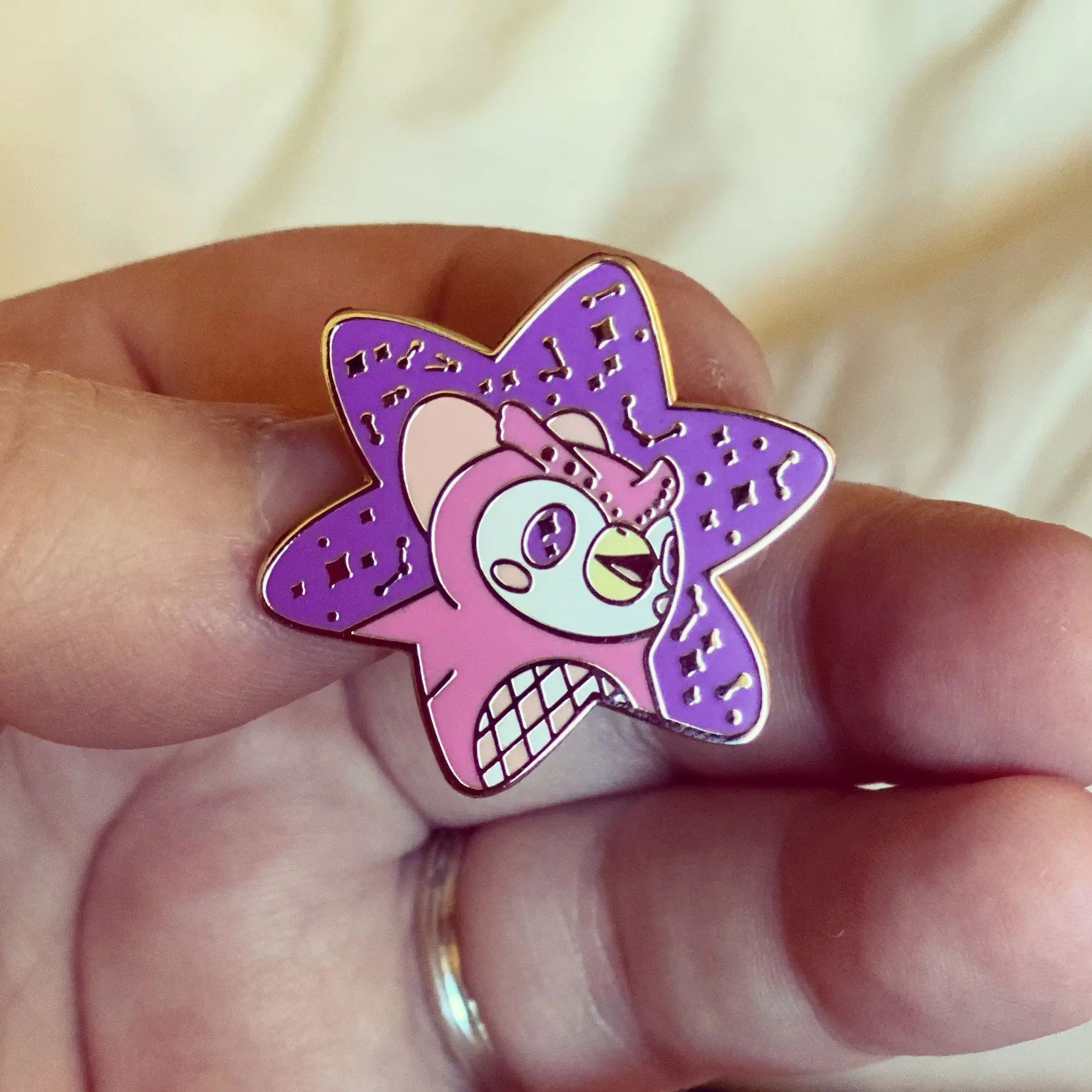 Очень мило и очень хорошо сделано. Прибыл очень быстро, и я очень доволен булавкой. Обязательно буду покупать у продавца снова в будущем для друзей