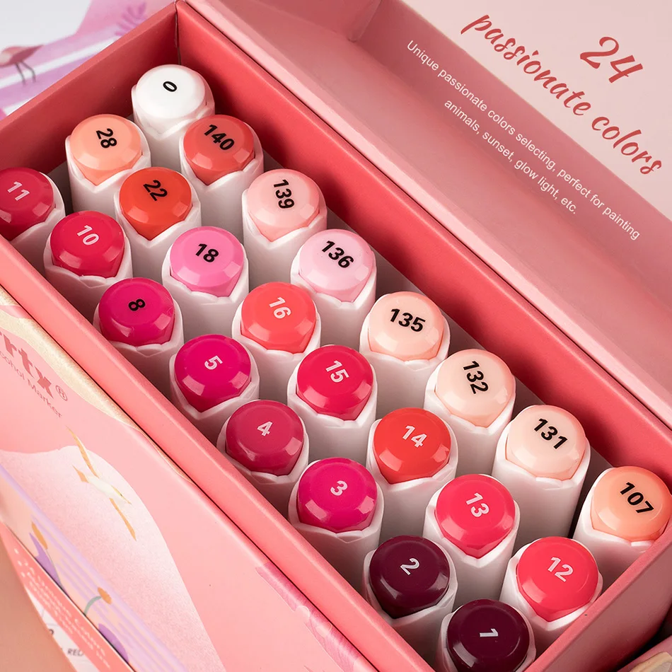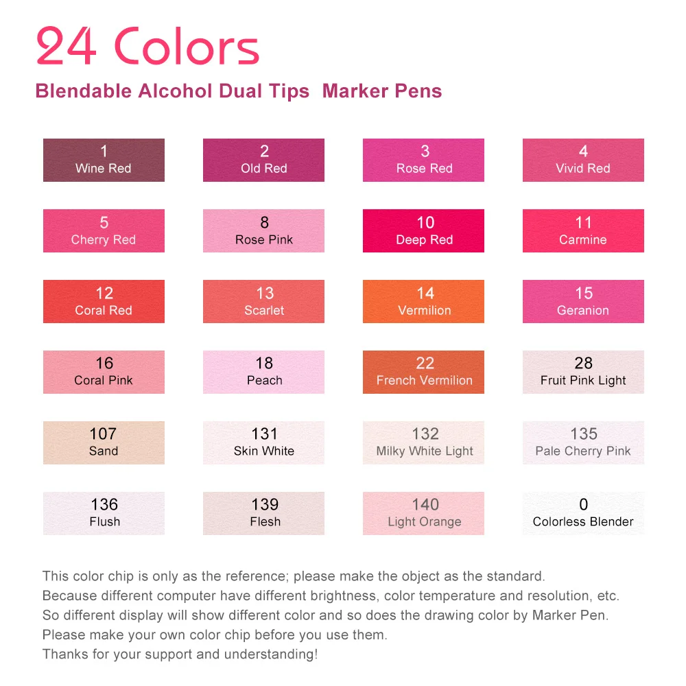Спиртовой фломастер Arrtx ALP Red Tone, 24 цвета, двусторонние фломастеры, идеально подходят для рисования животных, заката, свесветильник и т. д.