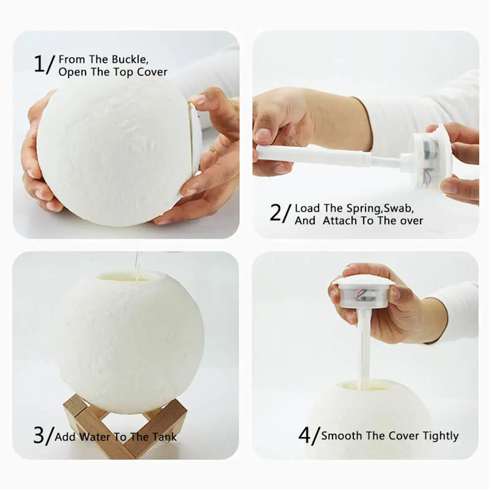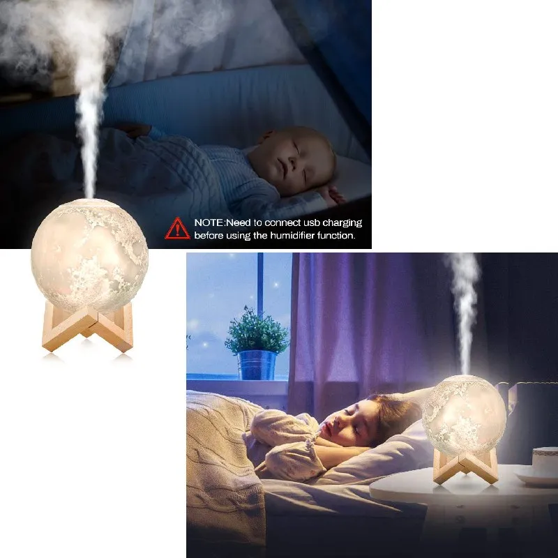Светодиодный ночник 880 мл с имитацией 3D Луны, ультразвуковой увла...