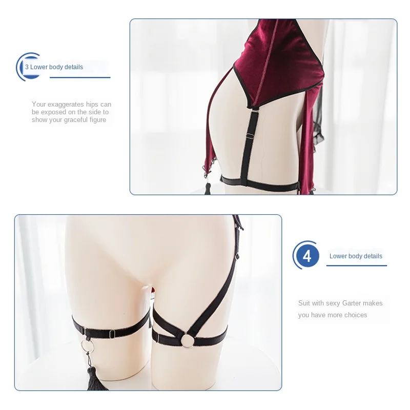 Сексуальное женское нижнее белье в готическом стиле, черное, Красно...