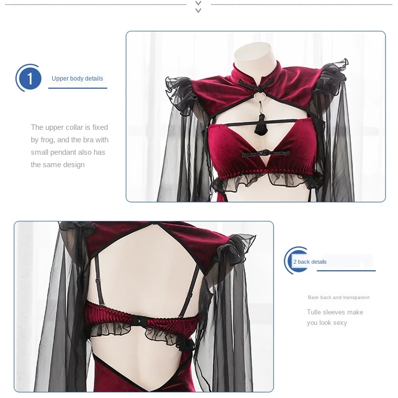 Женский винтажный бархатный костюм Ципао с вырезом и открытой спино...