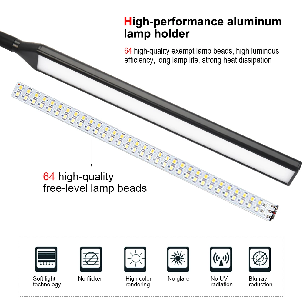 Светодиодная настольная лампаОбеспечивая равномерный, мягкий и не мерцающий светильник, который может эффективно снять усталость глаз и защитить ваши глаза во время работы, учебы, создания, идеально подходит для детей, студентов и офисных сотрудников