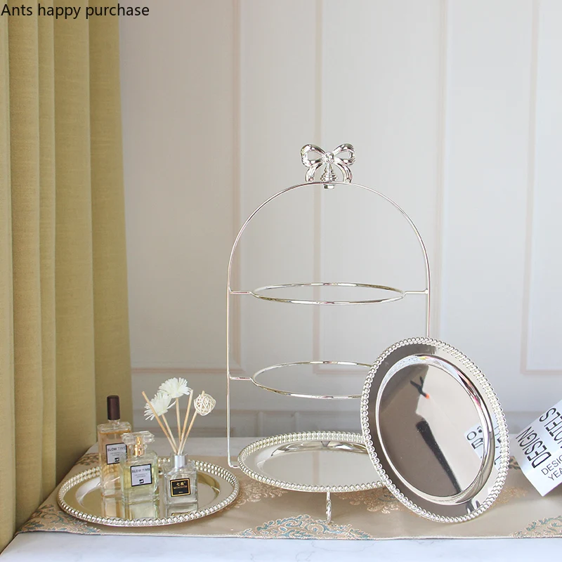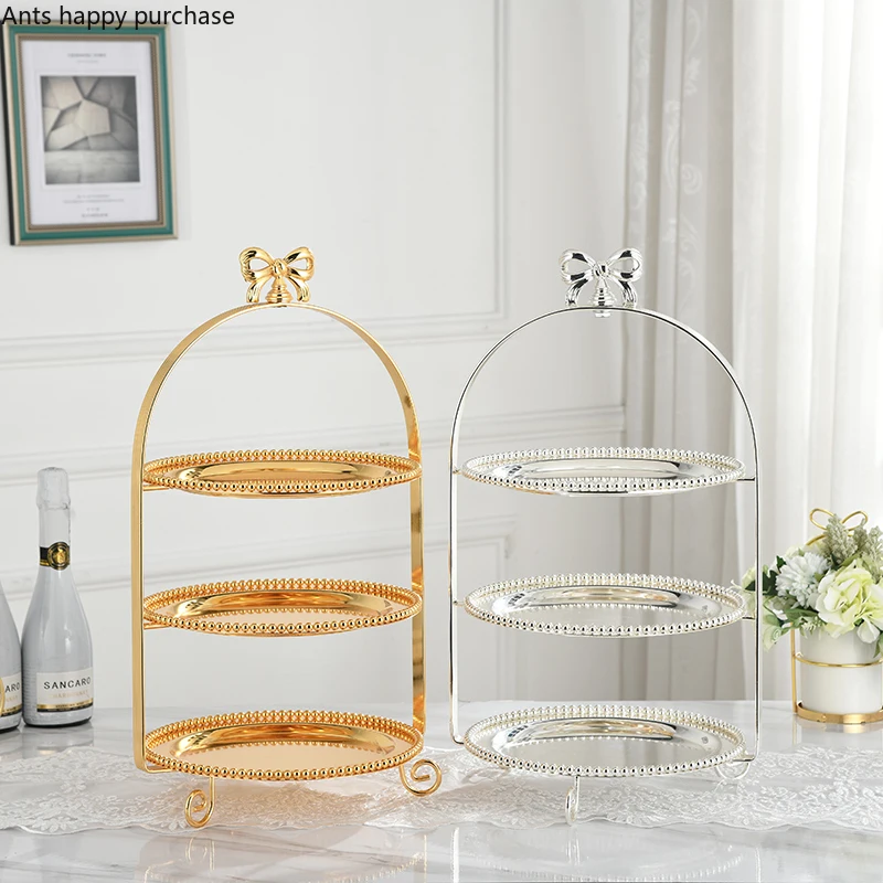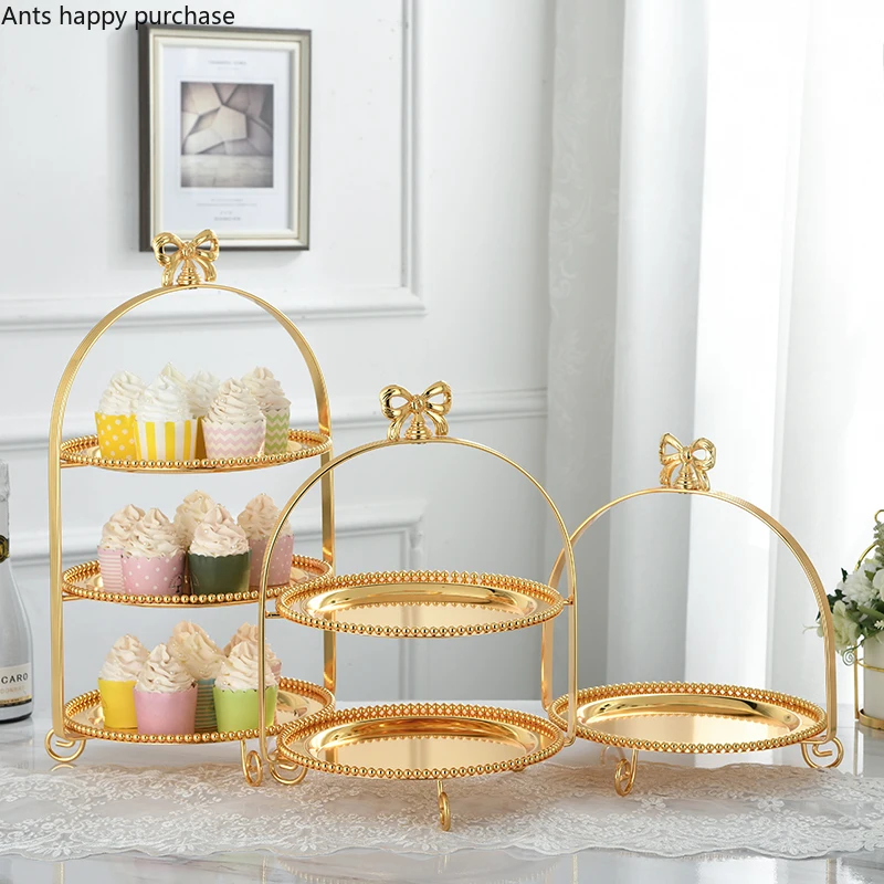 Однослойный двухслойный s трехслойный s Лук металлическая, для подставки для пирожных золотой серебряный круглый жемчуг десерт кастрюля фрукты поднос дисплей стенд