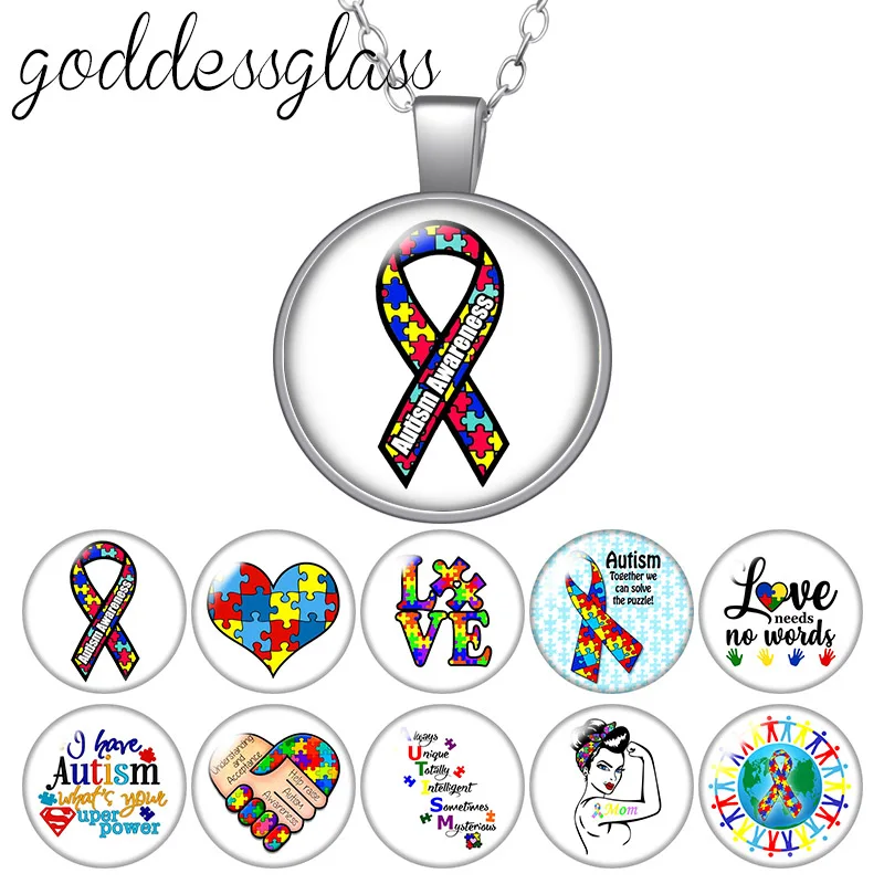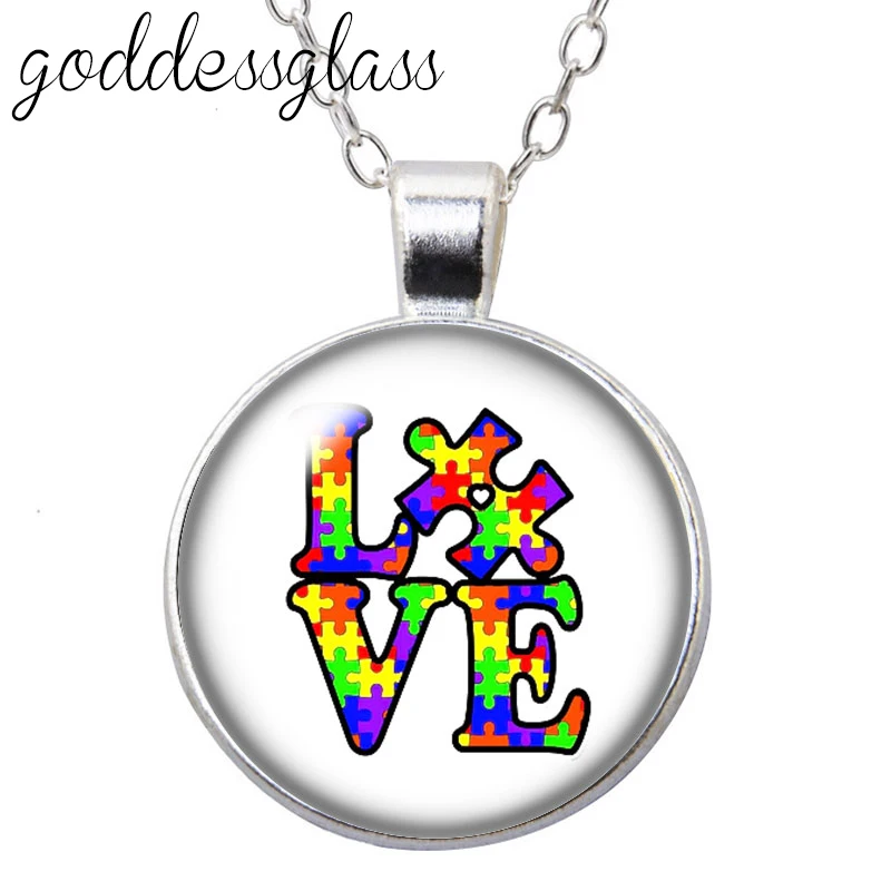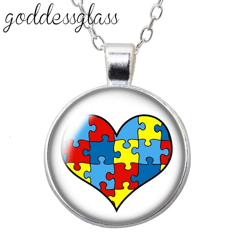 Пазл для осведомленности об аутизме красочная Лента Любовь круглый стеклянный кабошон посеребренныйхрустальный кулон ожерелье ювелирные изделия для подарка