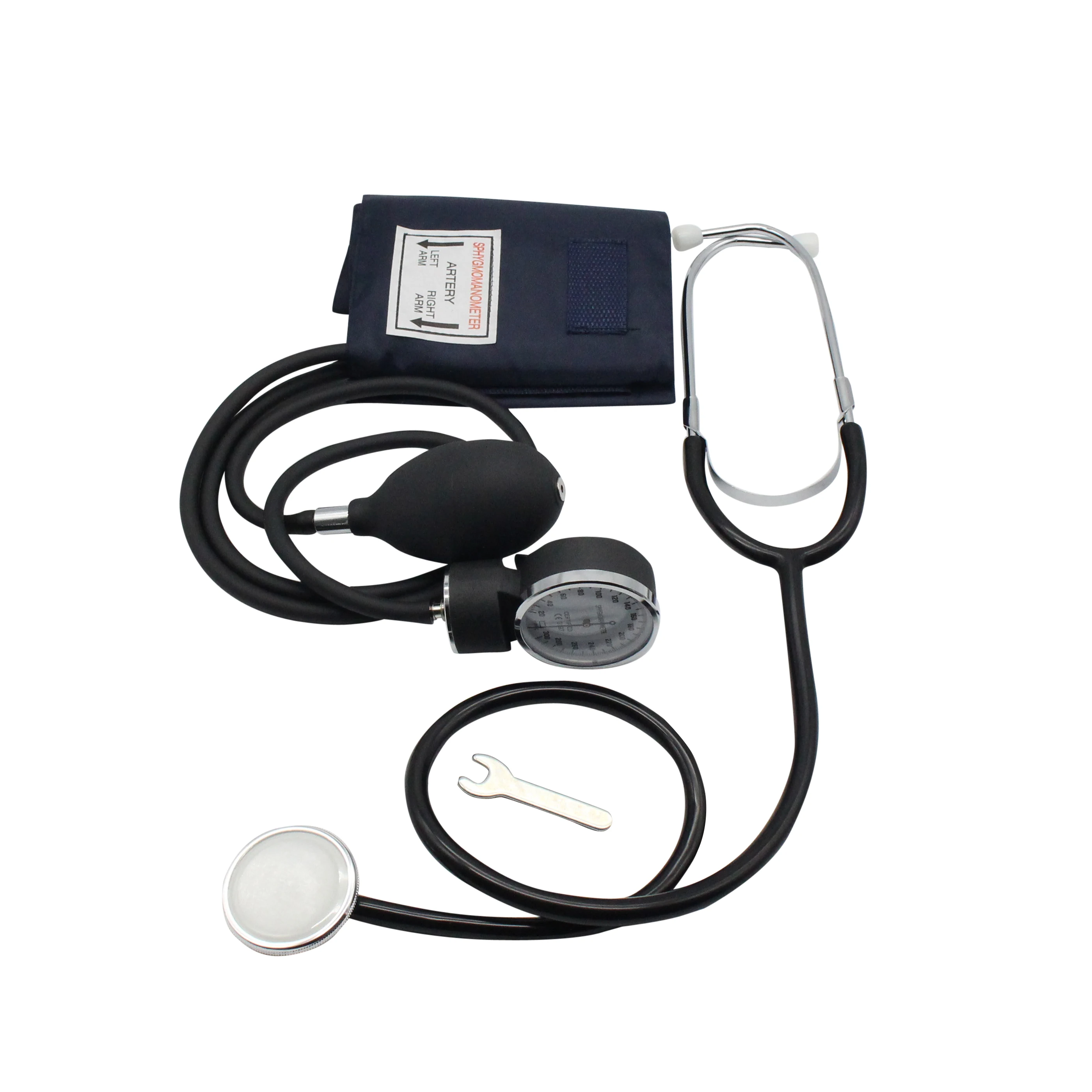 Посылка: 1 х анероидный сфигмоманометр1 х стетоскоп1 х удобные черные нейлоновые манжеты1 х черный кожаный чехол на молнии для переноски