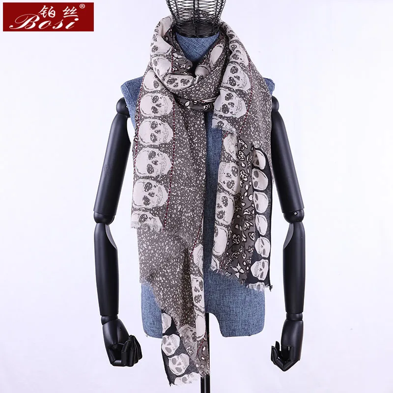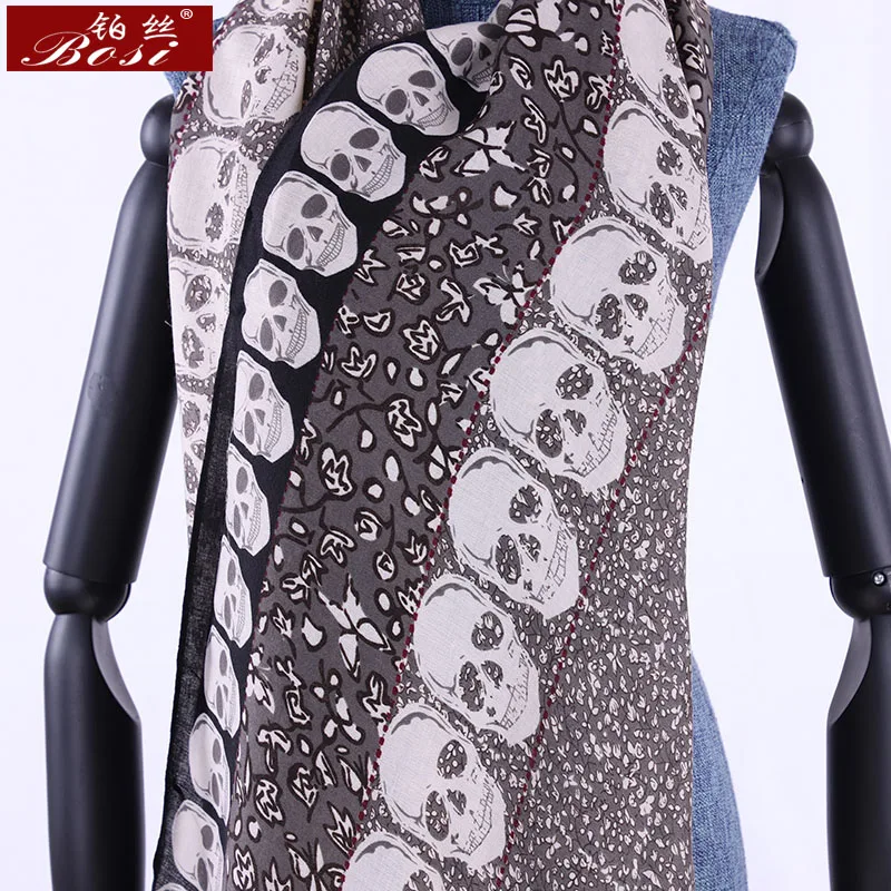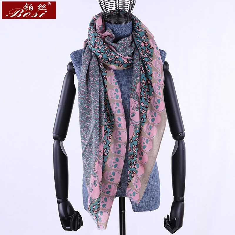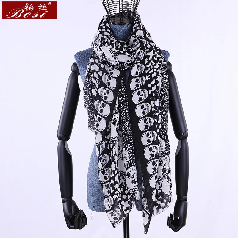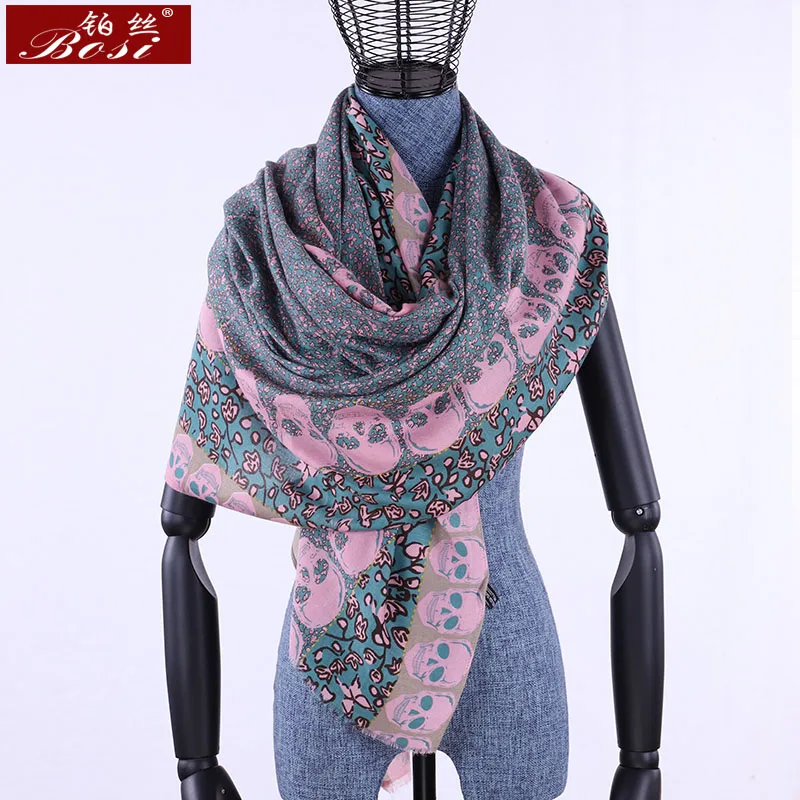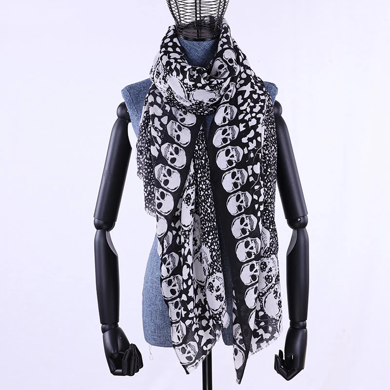 Шарф кашемировый женский, зимний, плотный, однотонный, с принтом черепа, 2020