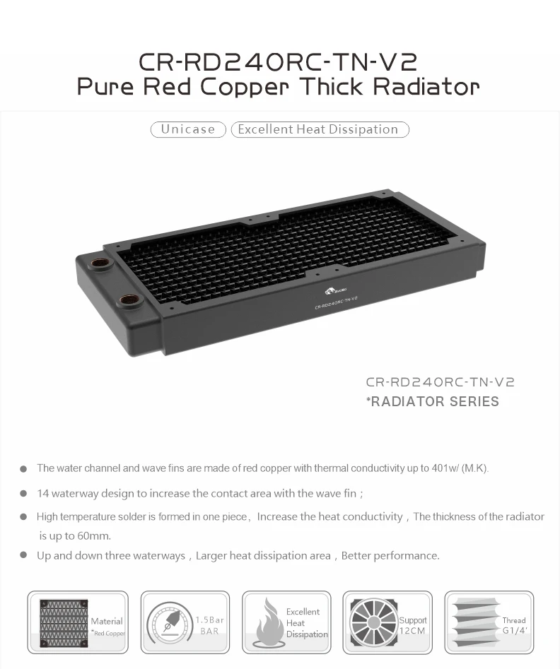 Радиатор Bykski медный для ПК, версия 2 G14 дюйма, 30 мм, поддержка 12 см, вентиляторы радиатор для ПК 120240360480 мм