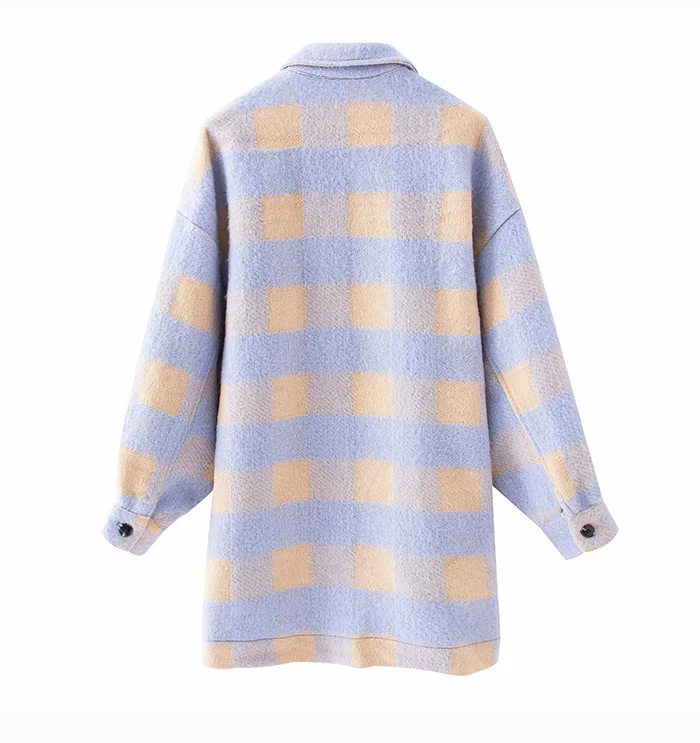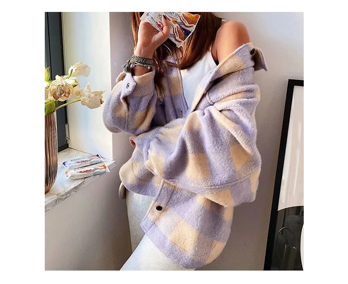 Женская клетчатая куртка на пуговицах, фиолетовая безразмерная курт...