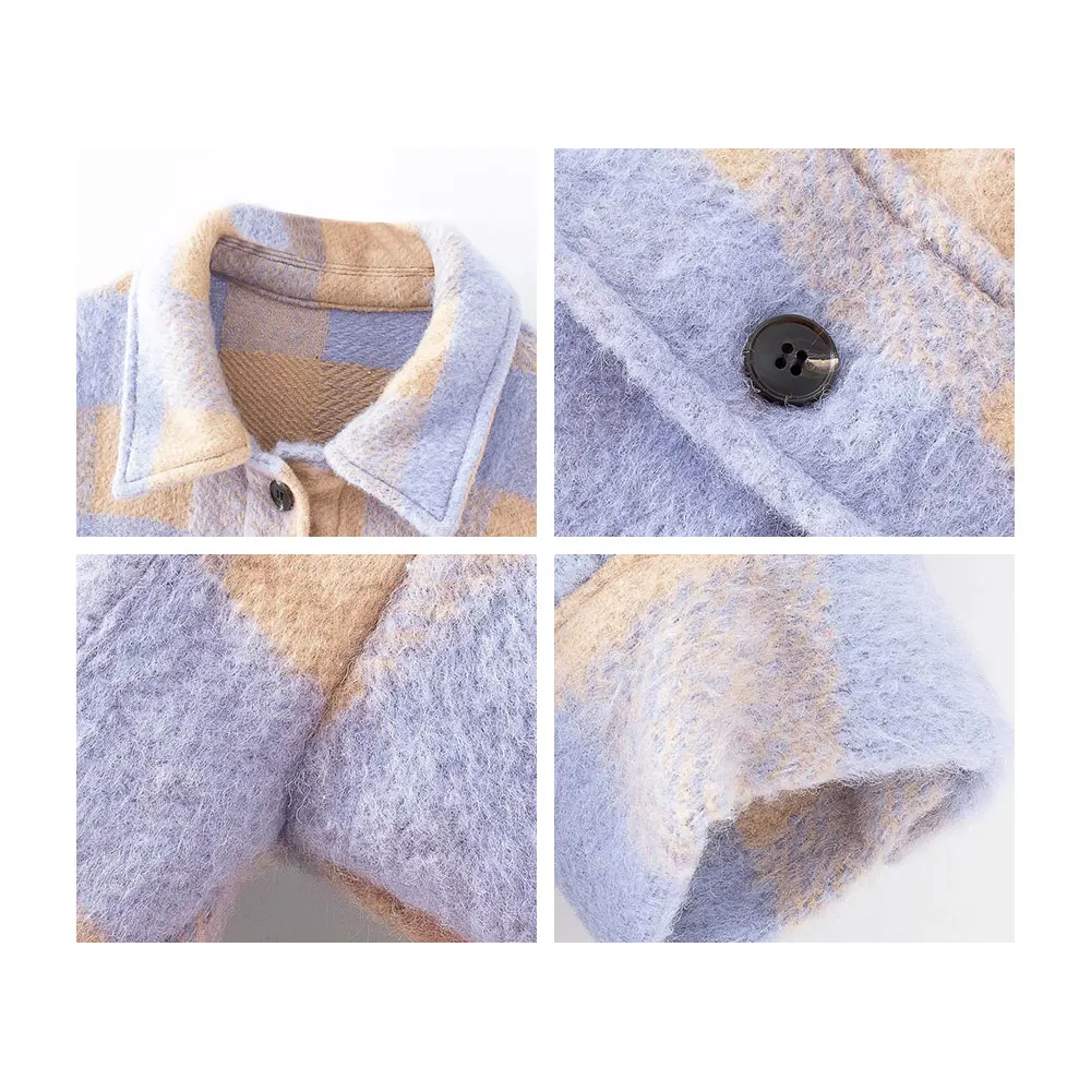 Женская твидовая рубашка Taro, теплая однобортная рубашка в шотланд...
