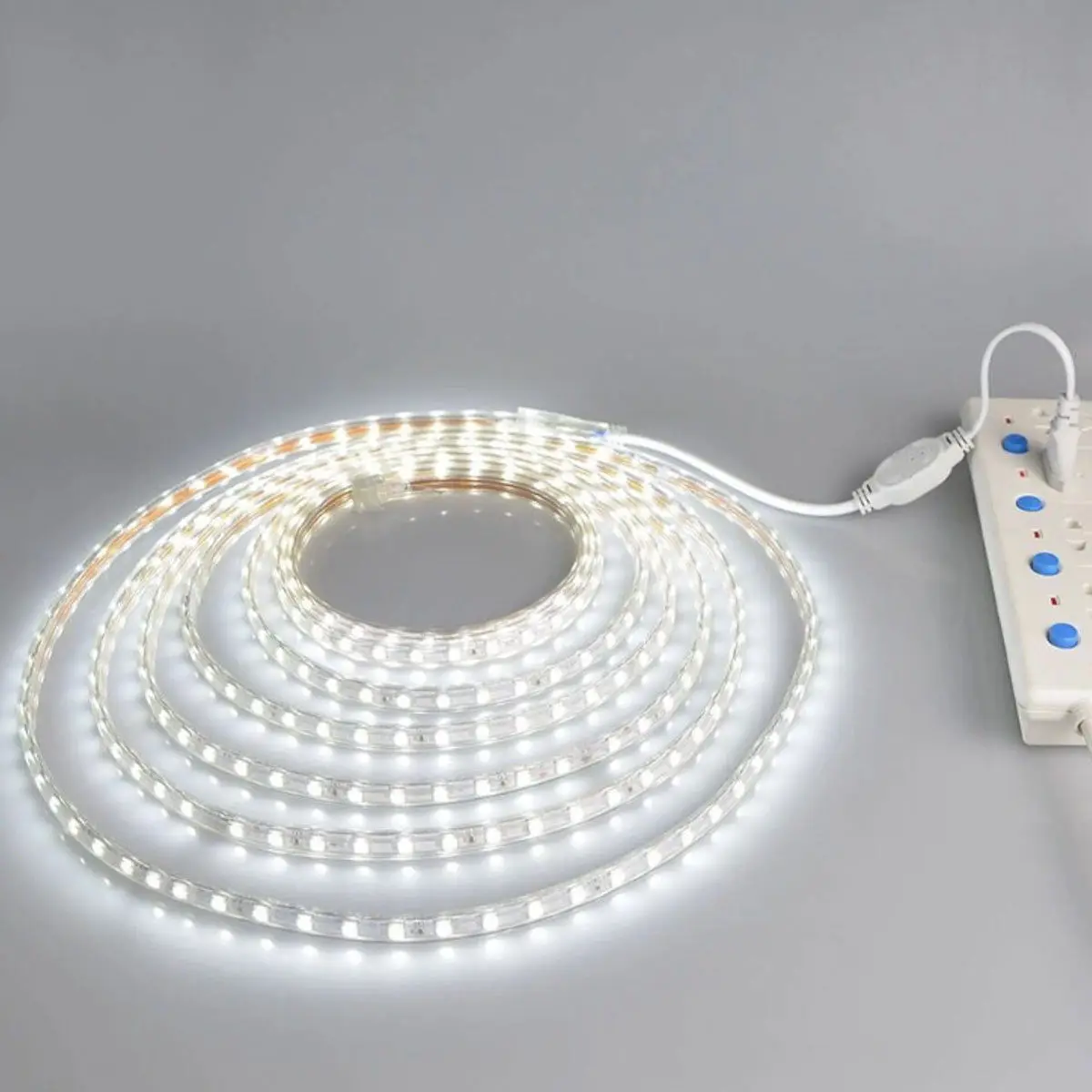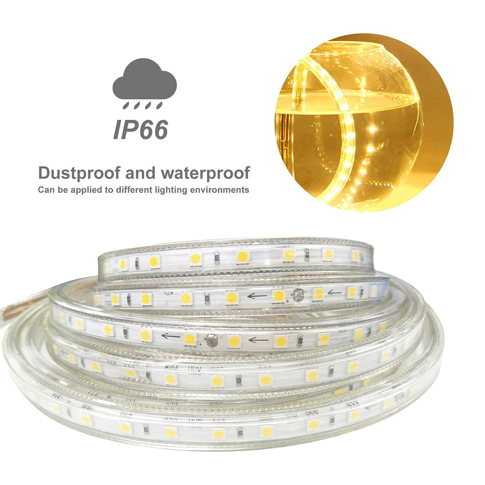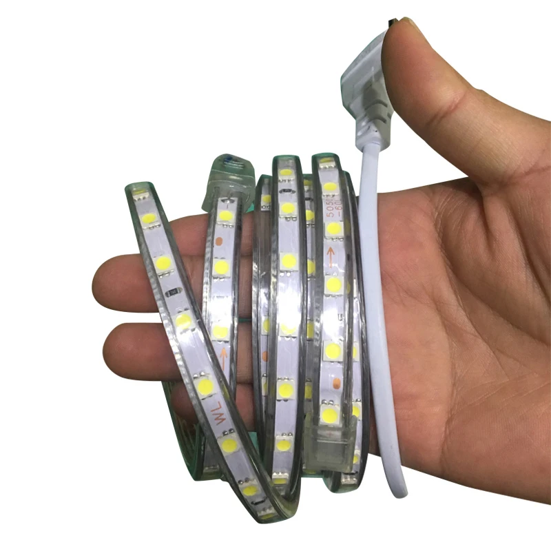 Название продукта: 220V Светодиодные ленты светильник Тип светодиодный: SMD 5050 Количество СВЕТОДИОДНЫЙ: 60 светодиодный s на метр Рабочее Входное напряжение: 220-240 В Светильник: холодный белый/теплый белый/синий/красный/зеленый Ширина печатной платы: 6 мм Материал: FPC + силиконовая трубка Угол луча: 120 ° Яркость: 7-10 (лм) Уровень водонепроницаемости: IP67 наружный водонепроницаемый Рабочая температура: от-20 до 50 ° Срок службы:> 50000 часов CE & RoHS Отлично подходит для украшения дома