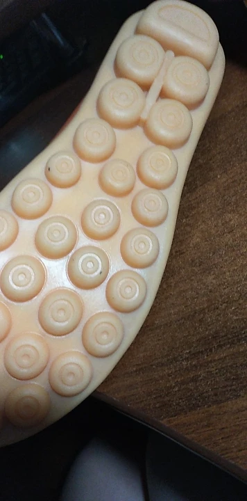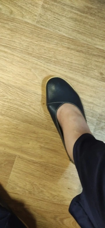 Сняла звезду за то что задник левого тапка выше на 1 мм правого , взяла ножницы для волос и обрезала ровно на 1мм теперь хорошо , на ногу 23 см заказала 23,5 см и точно по ноге удобно хорошо ,закажу в другом цвете